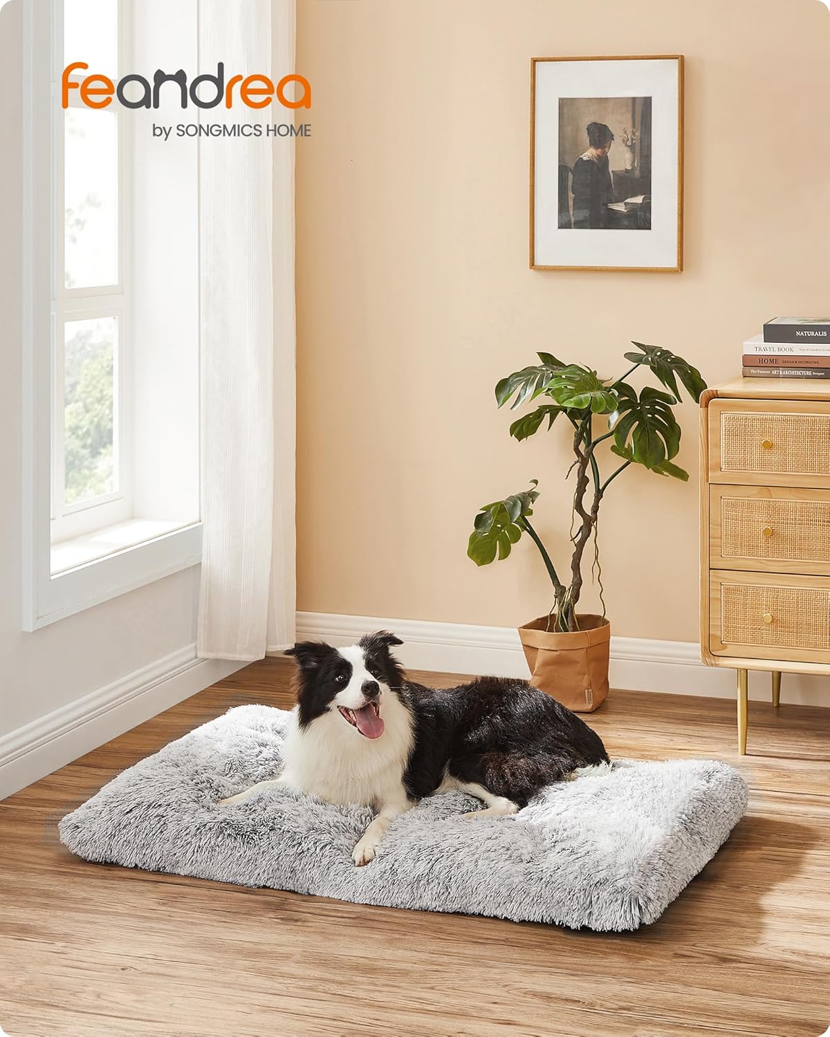 Кучешко легло Feandrea, Възглавница за кучета, Пухкава постелка за кучета, Дълга плюшена, 105 x 68 см, Мека подплата, Може да се пере, Многофункционална, Омбре сиво PGW206GA01