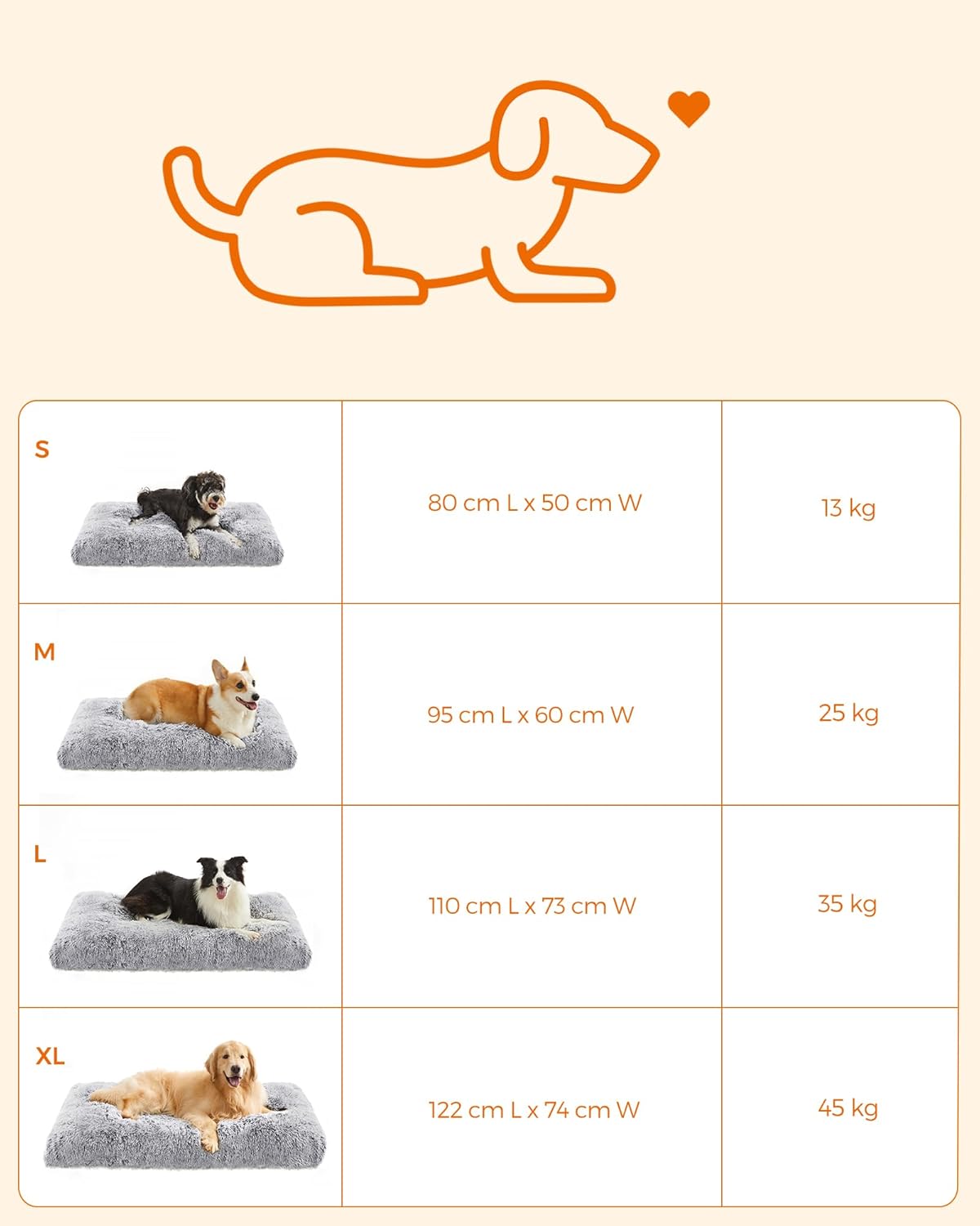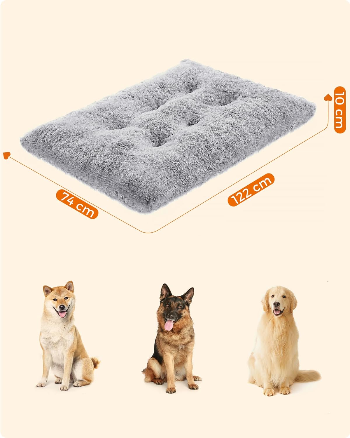 Кучешко легло Feandrea, Възглавница за кучета, Пухкава постелка за кучета, Дълга плюшена, Мека подплата, Може да се пере в пералня, Кошница за кучета, Многофункционална, Преносима, 122 x 74 см, Светло сиво, PGW204G01