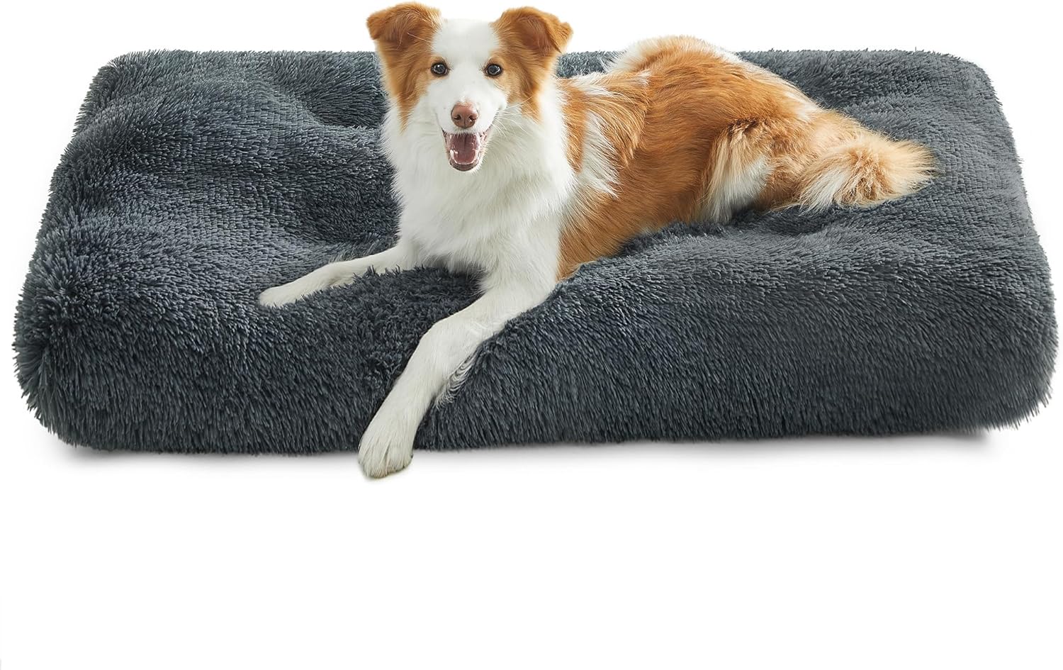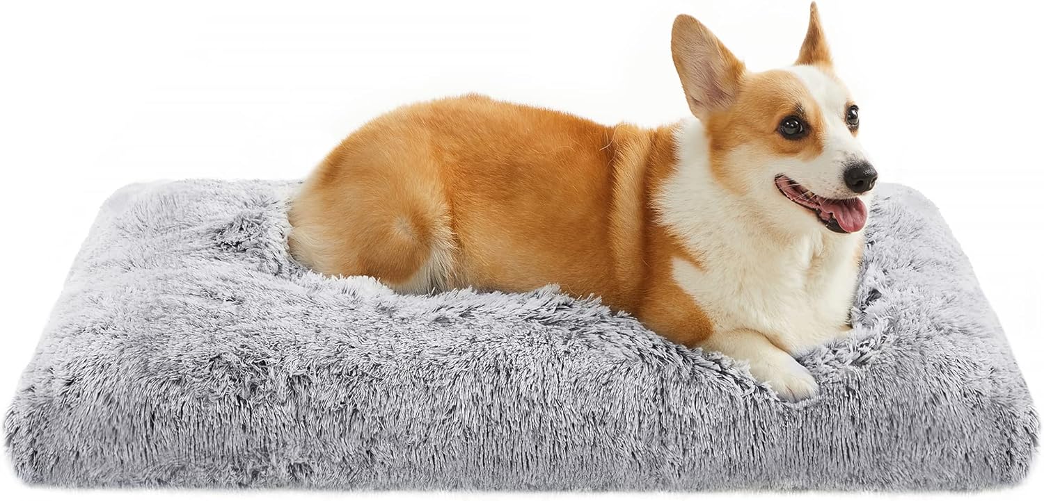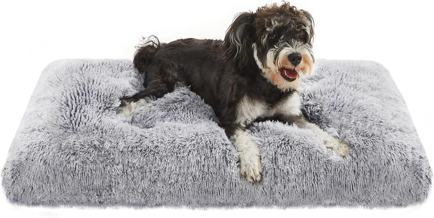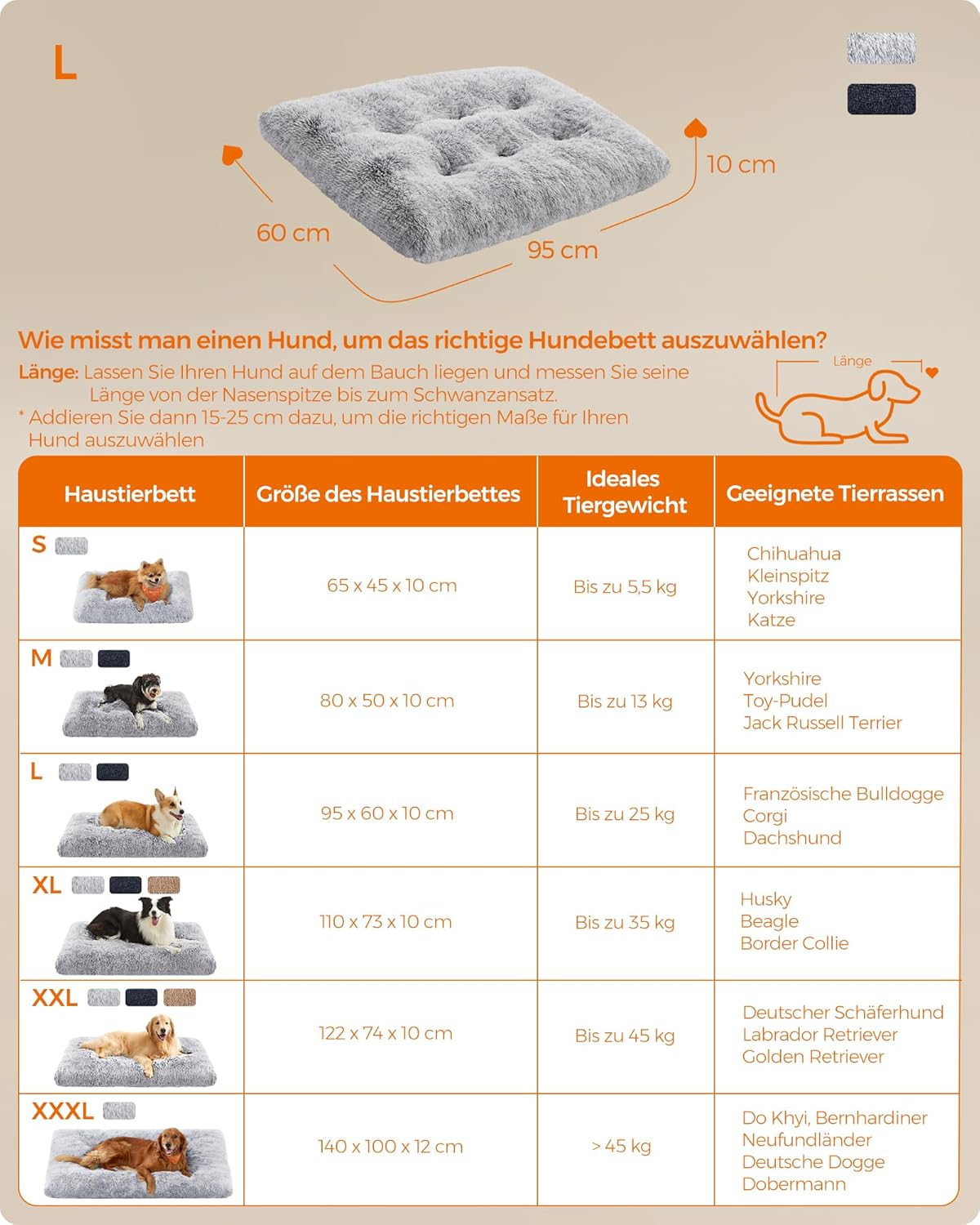 Кучешко легло Feandrea, Възглавница за кучета, Пухкава постелка за кучета, Дълга плюшена, Мека подплата, Може да се пере в пералня, Кошница за кучета, Многофункционална, Преносима, 95 x 60 см, Светло сиво, PGW202G01