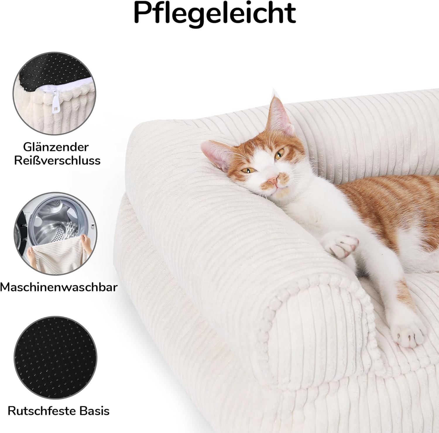 • ЛЕСНО ЗА ПЕРЕНЕ В ПЕРАЛНА МАШИНА Диванът за котки е с двойни ципове отдолу и отвътре, което позволява лесно разглобяване и почистване. Свалящият се външен калъф може да се пере в пералня, което гарантира безпроблемна поддръжка и дълготрайна издръжливост.