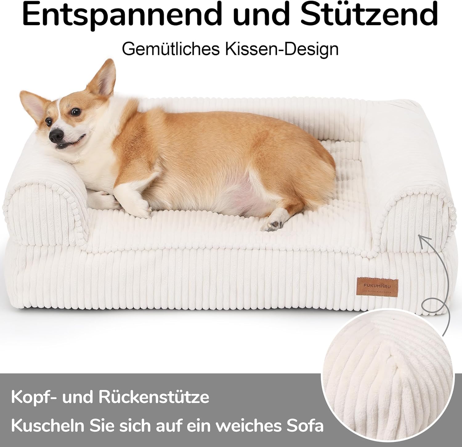 Кучешко легло FUKUMARU, Пухкаво кучешко легло с TPU слой за сухо хранене, Кучешки диван среден размер, Лесна грижа, Топло котешко легло с подвижен калъф с цип, 93 см, Голямо, Кремаво