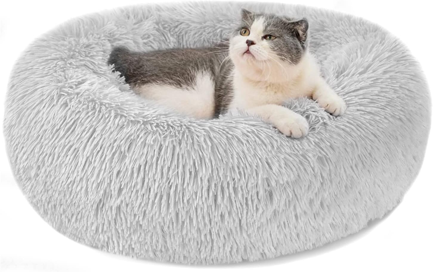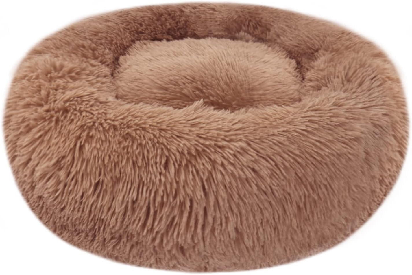 Кучешко легло, пухкава кръгла плюшена възглавничка за кучета - Donut, пухкаво котешко легло, кошница за кучета, пераща се, размер S/M/L/XL/XXL за малки, средни и големи кучета, котки и други домашни любимци (L-60 см, светло сиво)