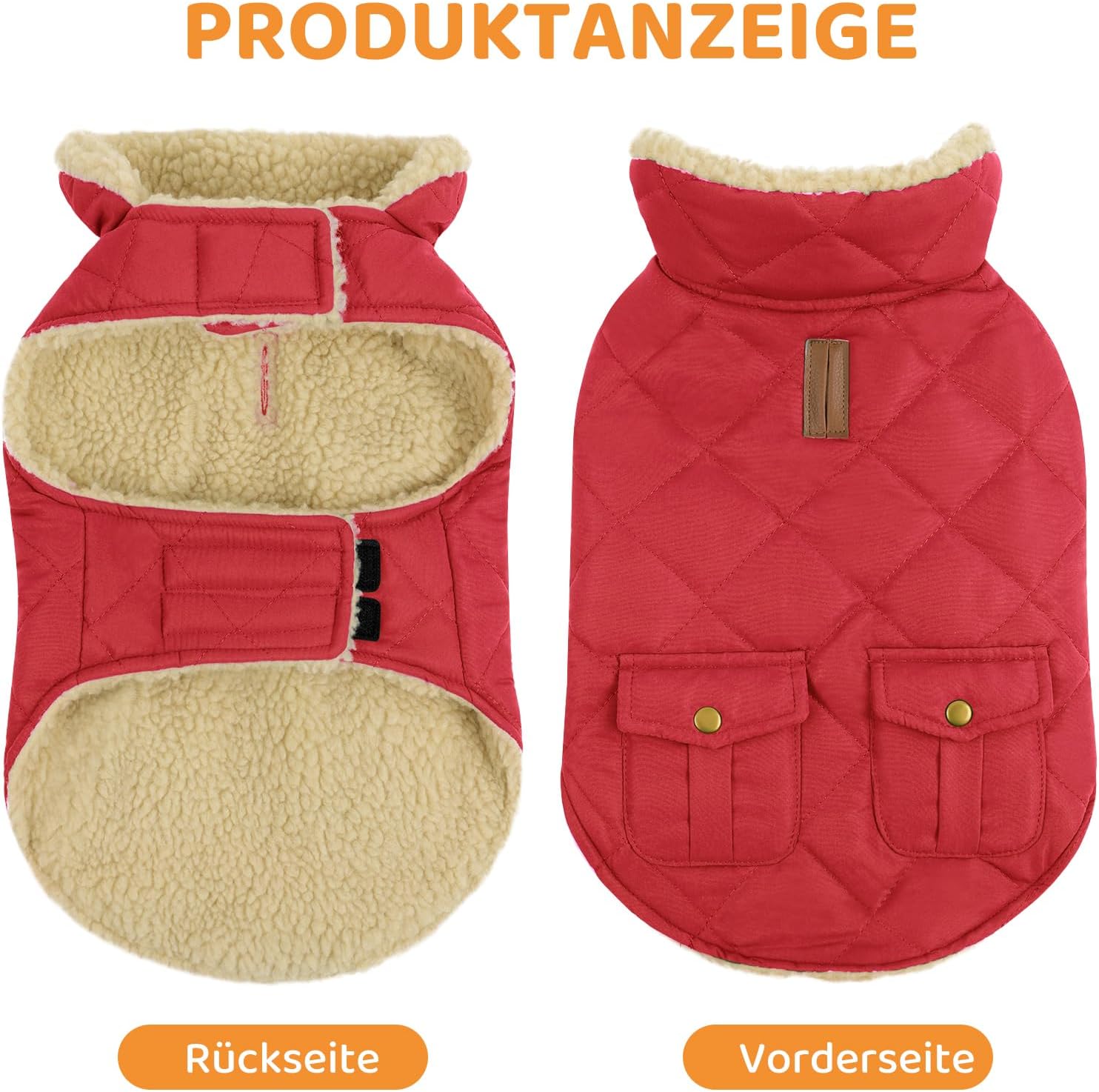 Кучешко палто Queenmore Зимно палто за големи кучета Топло зимно палто Кучешко поларено яке за кучета Водоустойчиво капитонирано облекло за кучета Пуловер за кучета за хрътка, дакел, булдог, бигъл, лабрадор, червено, L