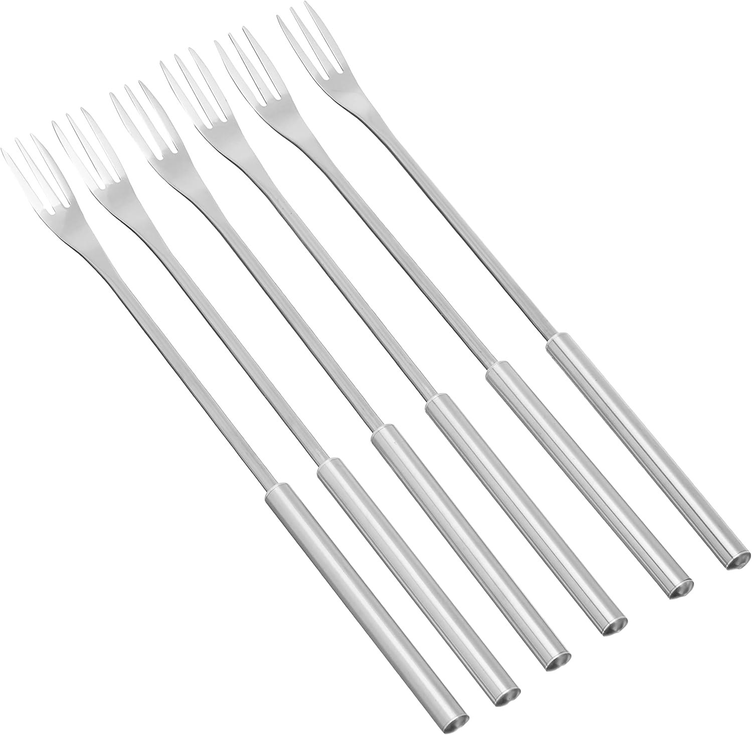 Предната част на всяка вилица за фондю от месо е изработена от висококачествена неръждаема стомана. Дръжките се предлагат в различни материали: черешово дърво, елегантна неръждаема стомана или пластмаса. Вилиците за фондю от месо се продават като комплект от шест. Благодарение на кръглите маркировки, всеки знае коя вилица е неговата.