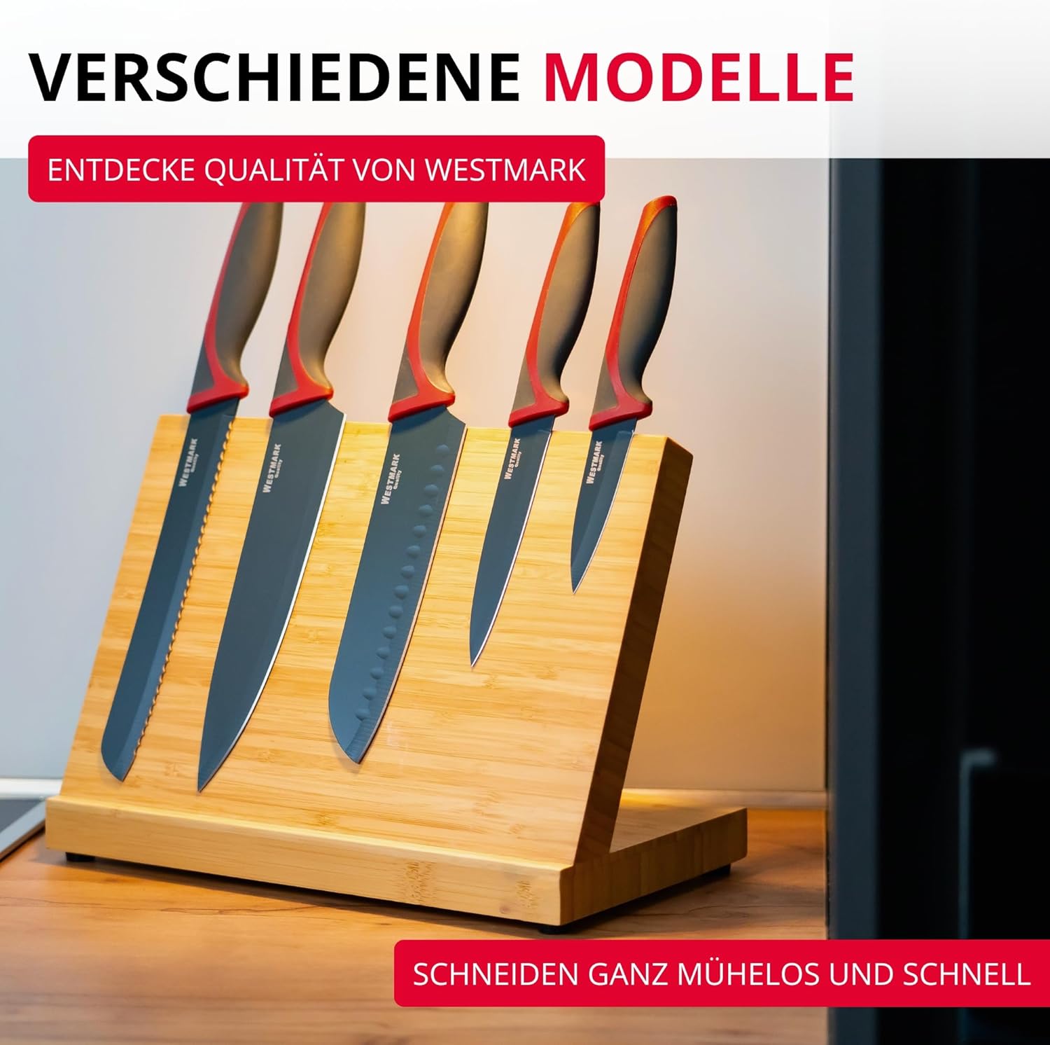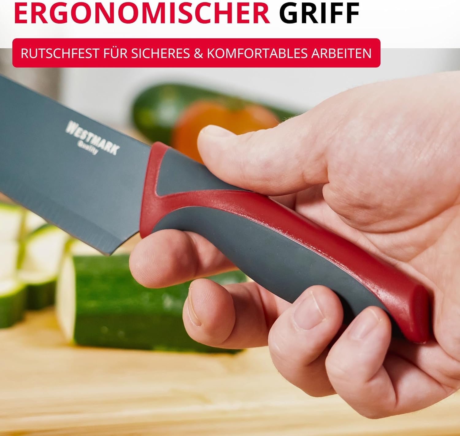 Надеждни и висококачествени кухненски помощнициПрактичните ножове Westmark са идеални помощници във всяка кухненска ситуация. Те са с остриета от неръждаема стомана, неръждаеми, и режат хляб, месо, зеленчуци или плодове бързо и прецизно. Ергономично оформените и лесни за хващане дръжки осигуряват сигурен и неплъзгащ се захват.