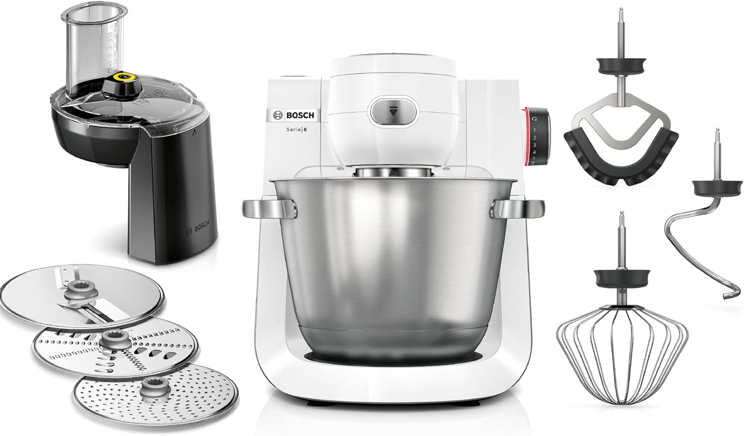 С многофункционалните си аксесоари, кухненският робот от серия 6 се справя професионално и прецизно с всяка задача в кухнята.