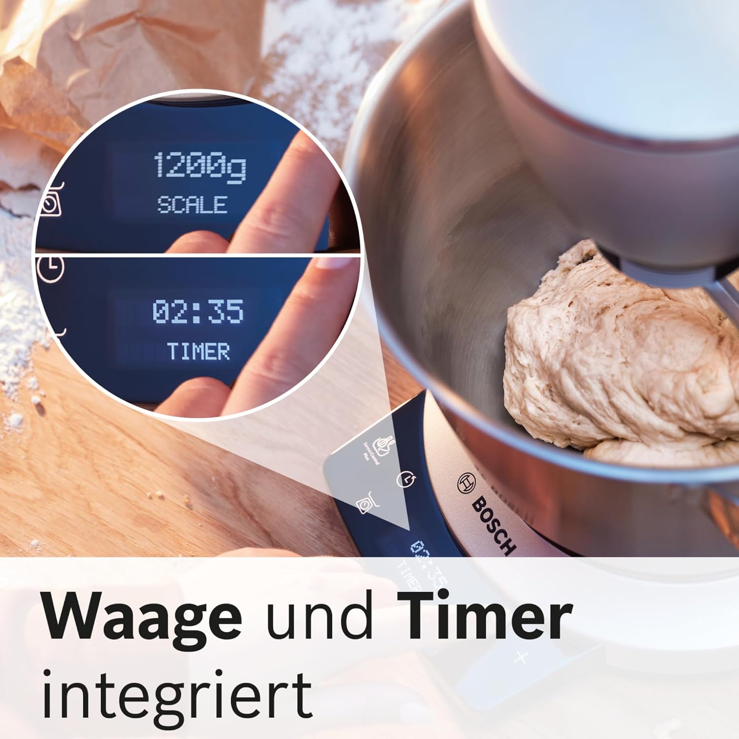 Enjoy the highest comfort from the beginning thanks to the integrated scales. By weighing the ingredients directly in the bowl or in the accessories, your dough can be used for delicious cakes, cakes and much more. even easier. As you do not need any additional kitchen scales, you also save space and time.