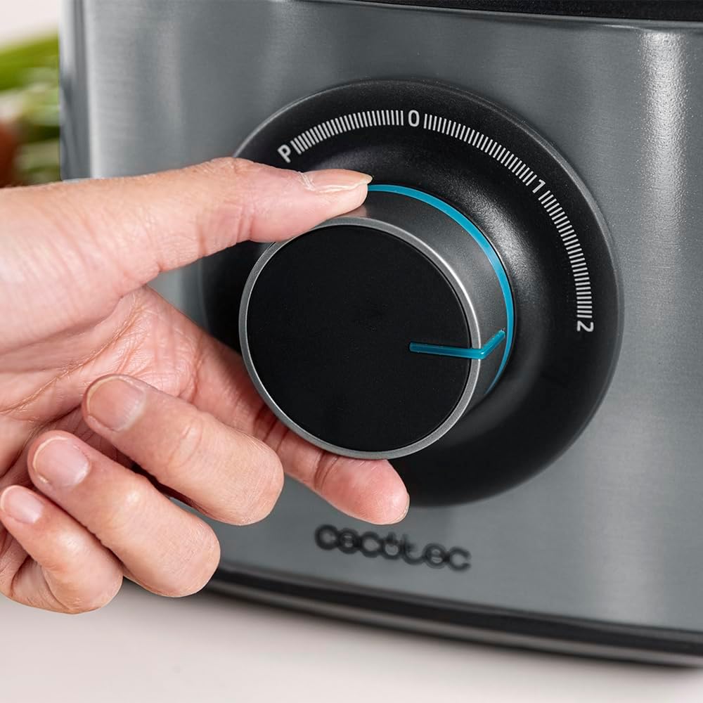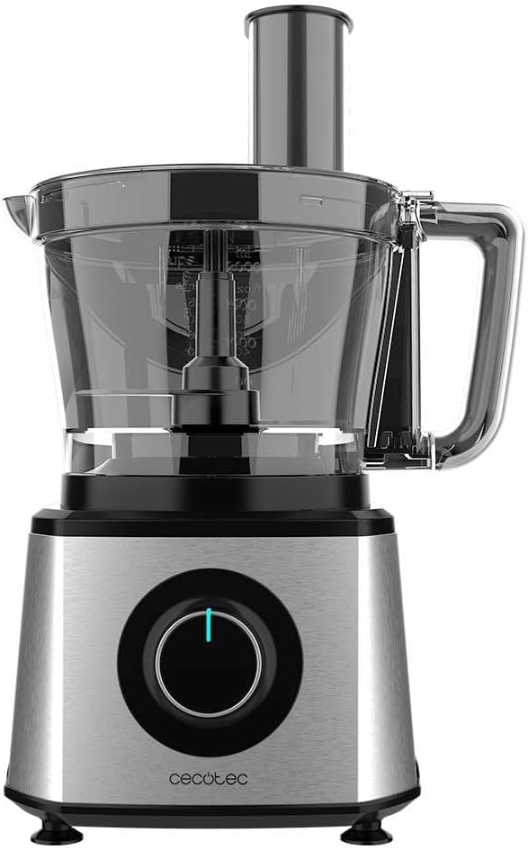 Кухненски робот Cecotec Comino 1000. 1000 W, 2 скорости и импулсен режим, купа 2 л и кана 1,8 л, 3 режещи диска, сатъри, нож за месене, сокоизстисквачка и диск за сметана.