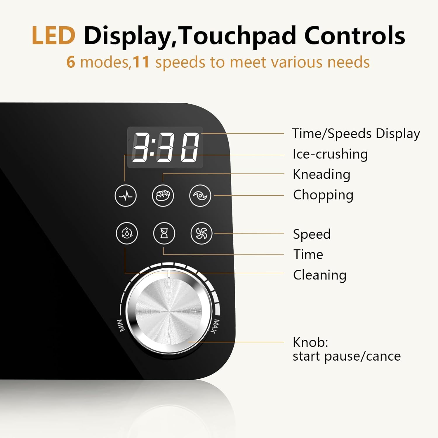 • Професионален кухненски робот: Оборудван с мощен 1500W мотор, той има различни настройки за скорост и време, както и импулсна функция. Обработва широка гама от хранителни съставки само за няколко секунди, което ви позволява да намалите времето за готвене.
