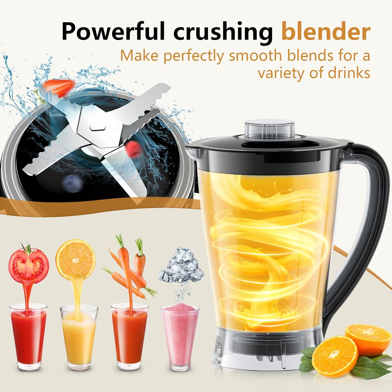 • Многофункционален кухненски робот: 9 в 1 функция, идеален за кълцане (едро и фино), рязане (тънко и дебело), ​​рязане на чипс, смилане на кафе, рязане на месо, рязане на лед, месене, изцеждане на сок, разбиване. Може да се използва като резачка за зеленчуци, многофункционален блендер, месомелачка, кафемелачка, сокоизстисквачка, добър помощник във вашата кухня.