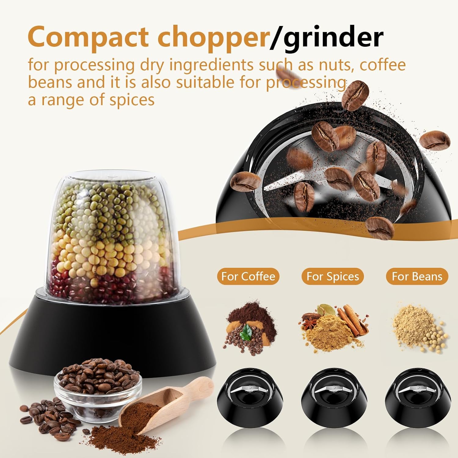 • Кухненски робот с голям капацитет: голяма купа за смесване от 2,5 литра, чаша за смесване от 1,5 литра, чаша за смилане за едновременно смилане на 60 г кафе на зърна. Благодарение на големия капацитет, можете лесно да обработвате разнообразни съставки. Идеален за приготвяне на големи ястия и за големи събирания!