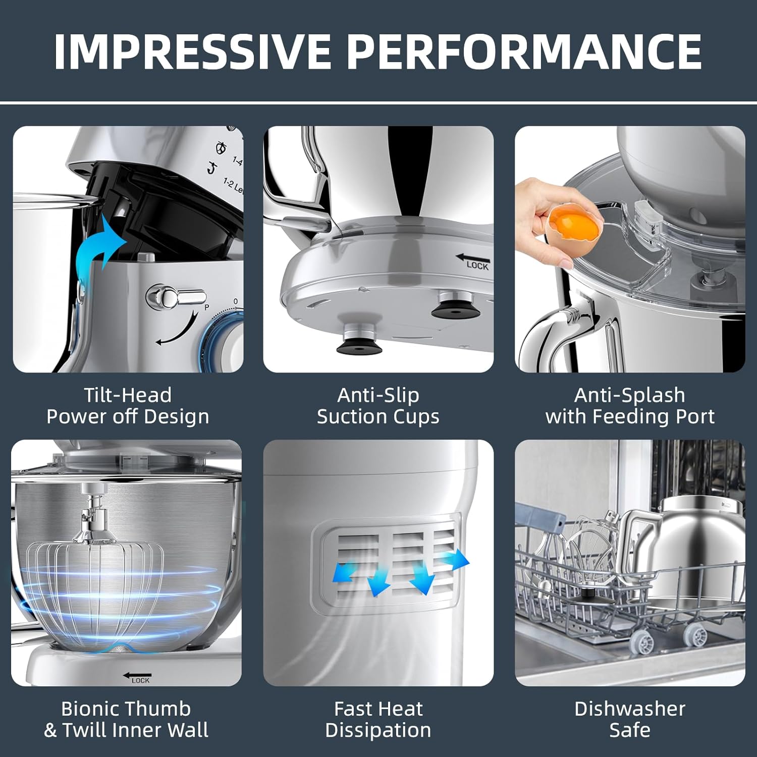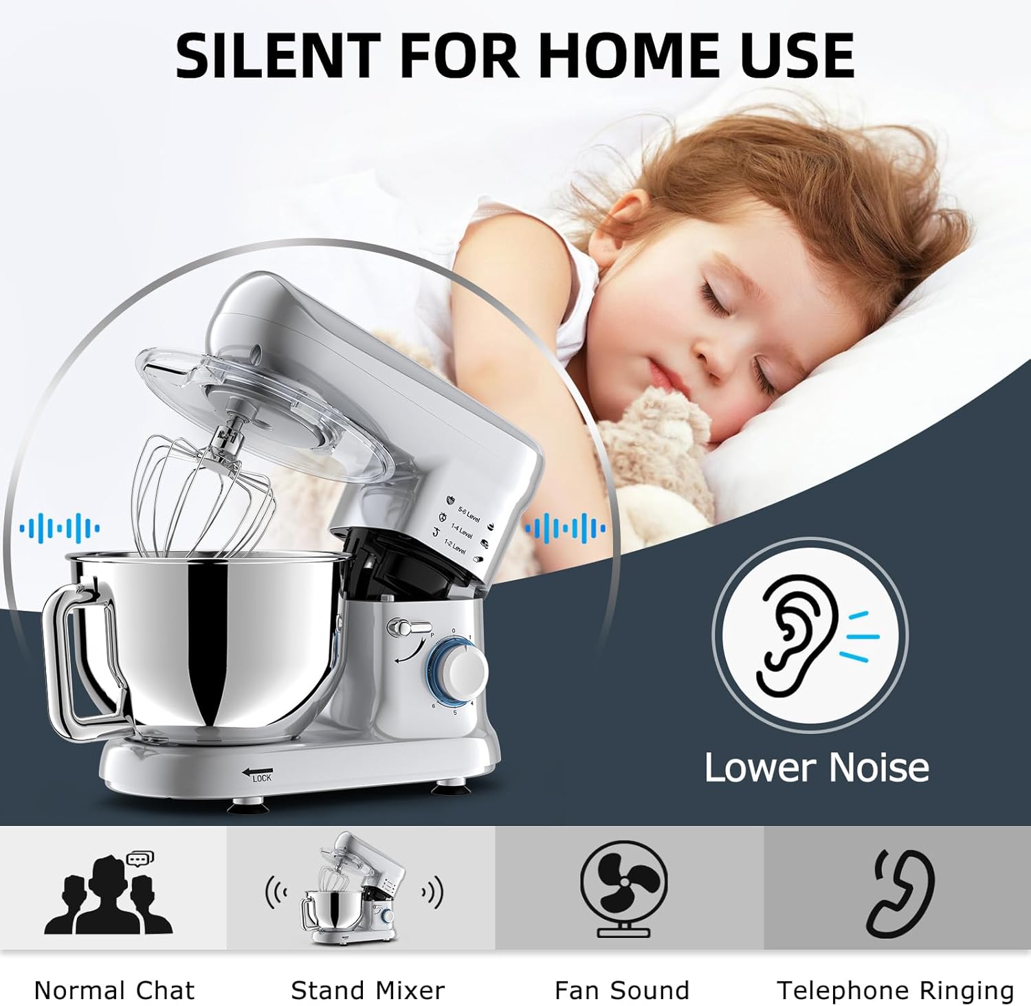 The electric mixer is equipped with a 2000W pure copper motor, which significantly improves mixing performance. The quiet operating noise (60-75dB) does not disturb others.