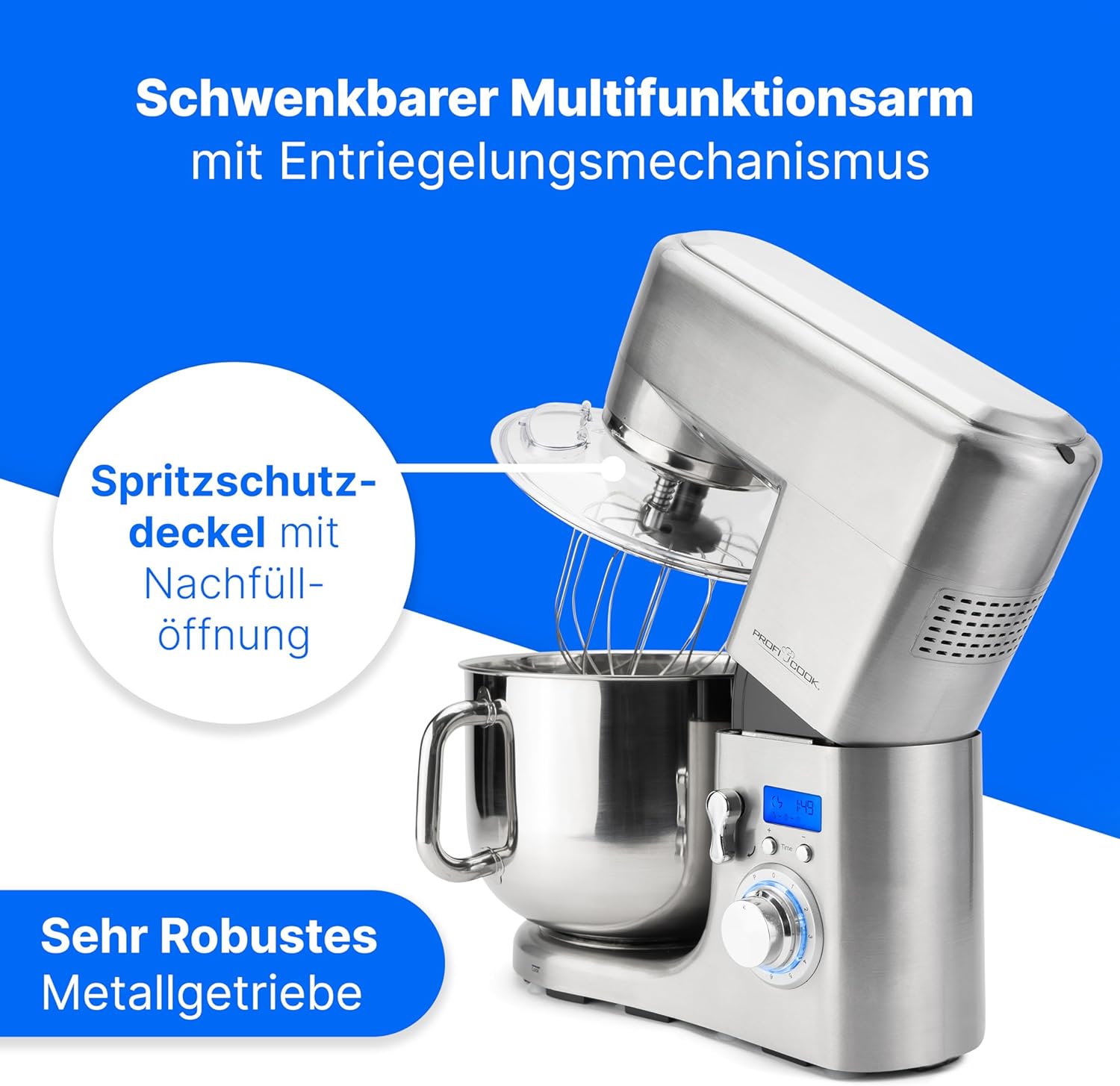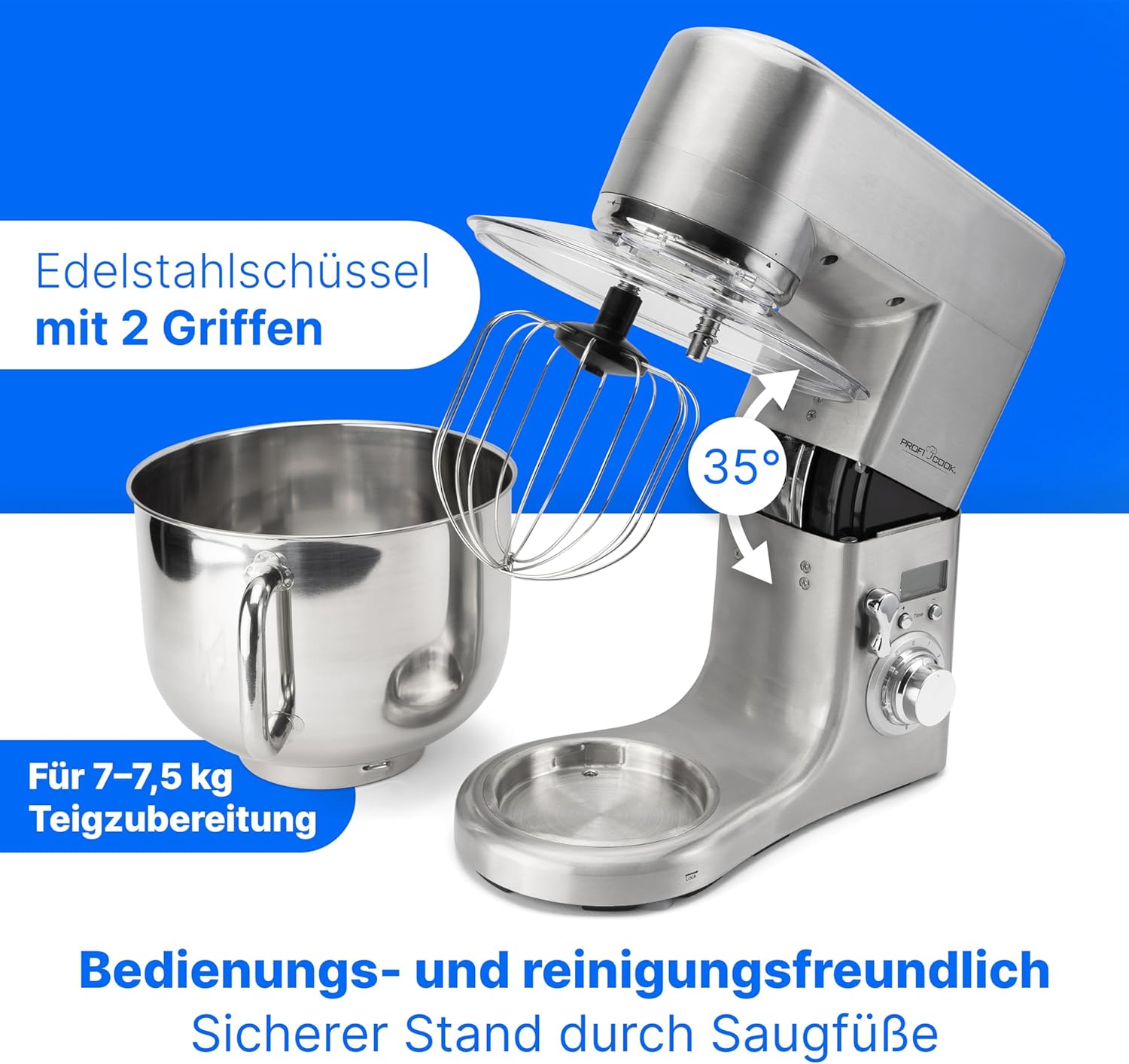 Мощен за цялото семейство: С мощния кухненски робот XXXL, включващ изключително голяма 10-литрова купа от неръждаема стомана (капацитет приблизително 7-7,5 кг), можете да приготвите перфектно тесто или други храни за нула време. Две дръжки отстрани на купата осигуряват сигурен захват. Благодарение на 8 настройки за скорост , постоянна производителност чрез електронен контрол на скоростта в зависимост от натоварването и дълготраен професионален мотор, този мощен кухненски робот осигурява резултати точно такива, каквито са ви необходими.