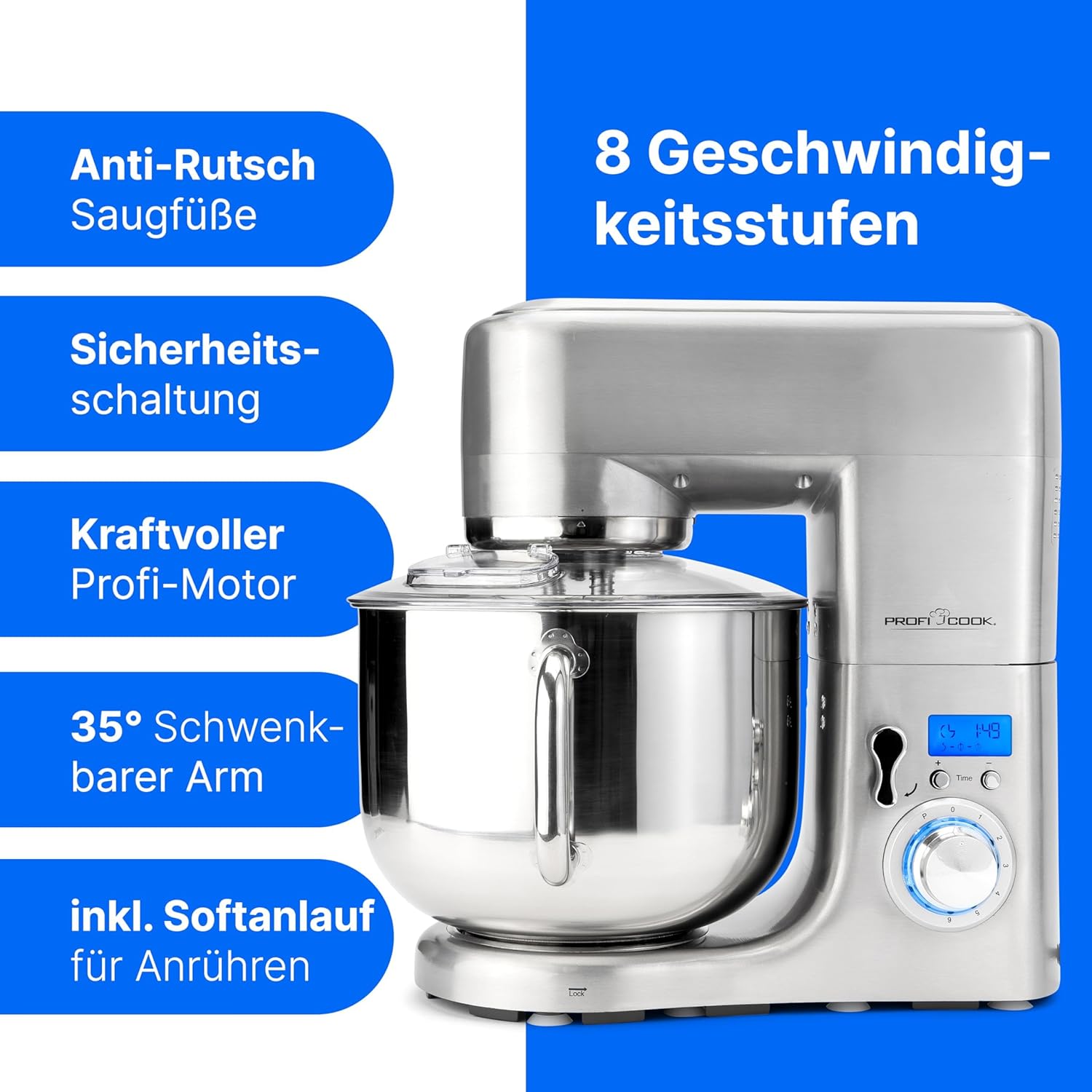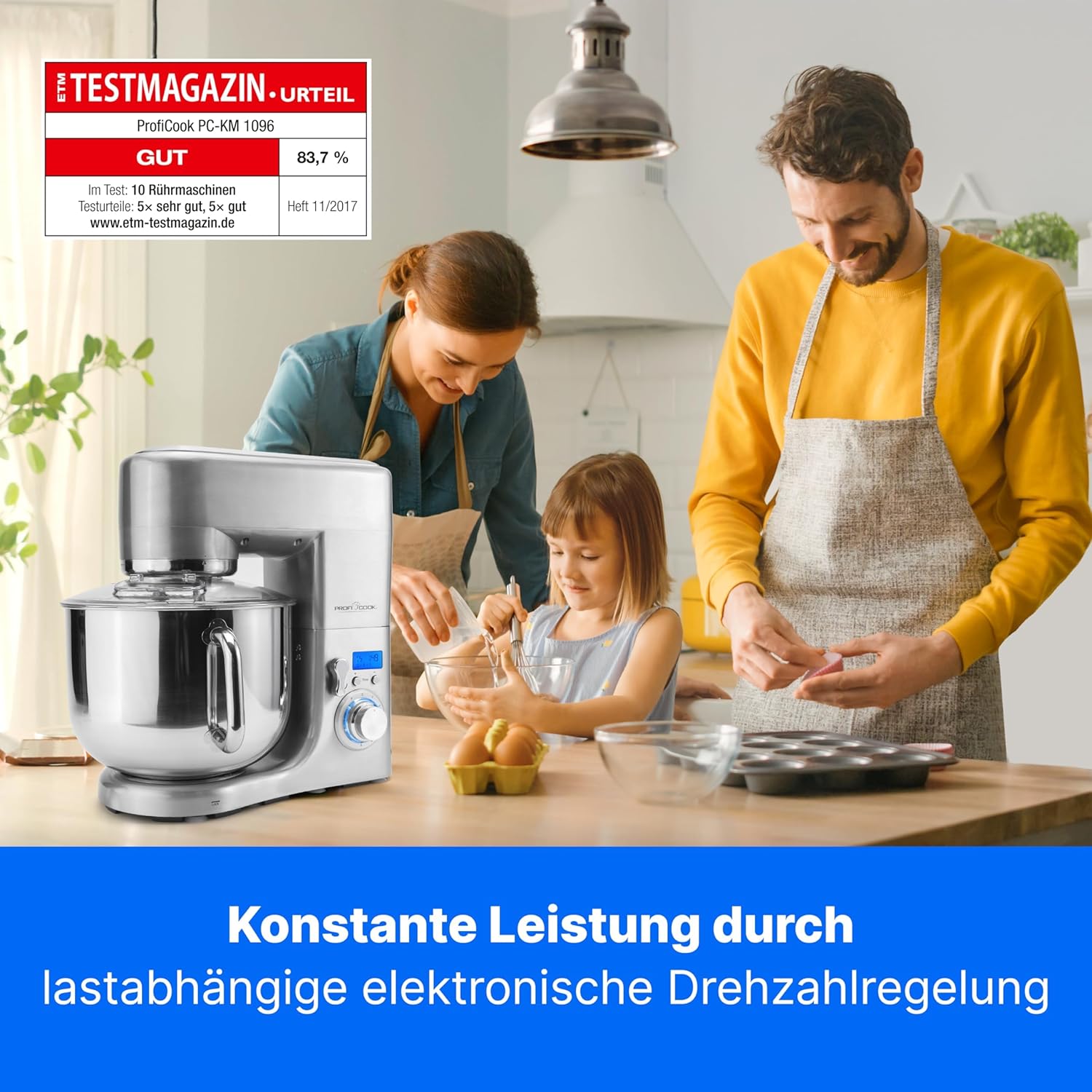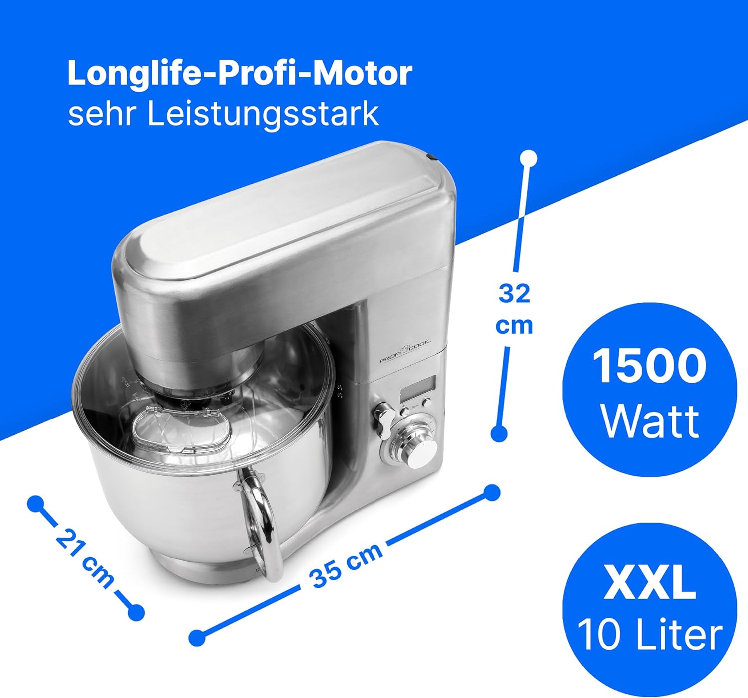 Кухненски робот ProfiCook PC-KM 1096 XXXL // 10-литрова купа от неръждаема стомана // корпус от лят алуминий // LCD дисплей // 1500 вата // неръждаема стомана
