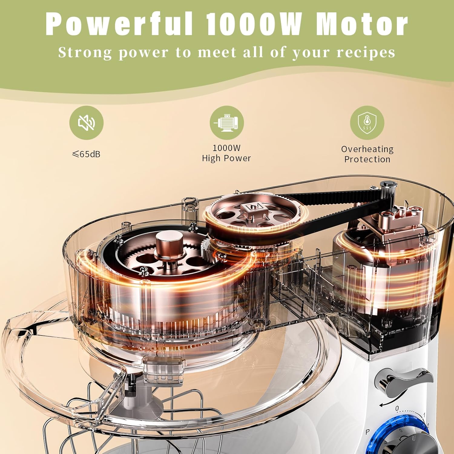 • Висока ефективност: Стационарен миксер Zuuccie с високопроизводителен мотор 1000 W, изработен от чиста мед, тестото може да се разтегне за 5-8 минути в ръкавично фолио за приготвяне на рохкав и еластичен хляб, здравият ABS корпус е издръжлив и лесен за почистване.