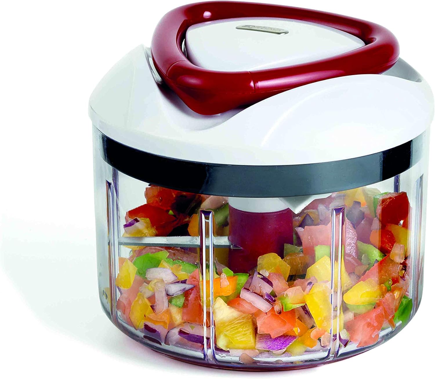 • Гъвкавото, въртящо се острие с патентован швейцарски дизайн осигурява перфектни резултати. То реже дори най-твърдите съставки. Подсиленият държач осигурява лесно и равномерно нарязване.