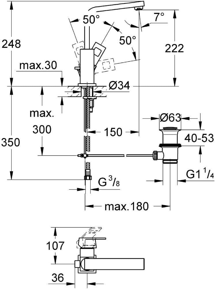 • Съдържание на кутията: кран за мивка, дърпаща щанга, пробка за източване, монтажен материал, ръководство за употреба