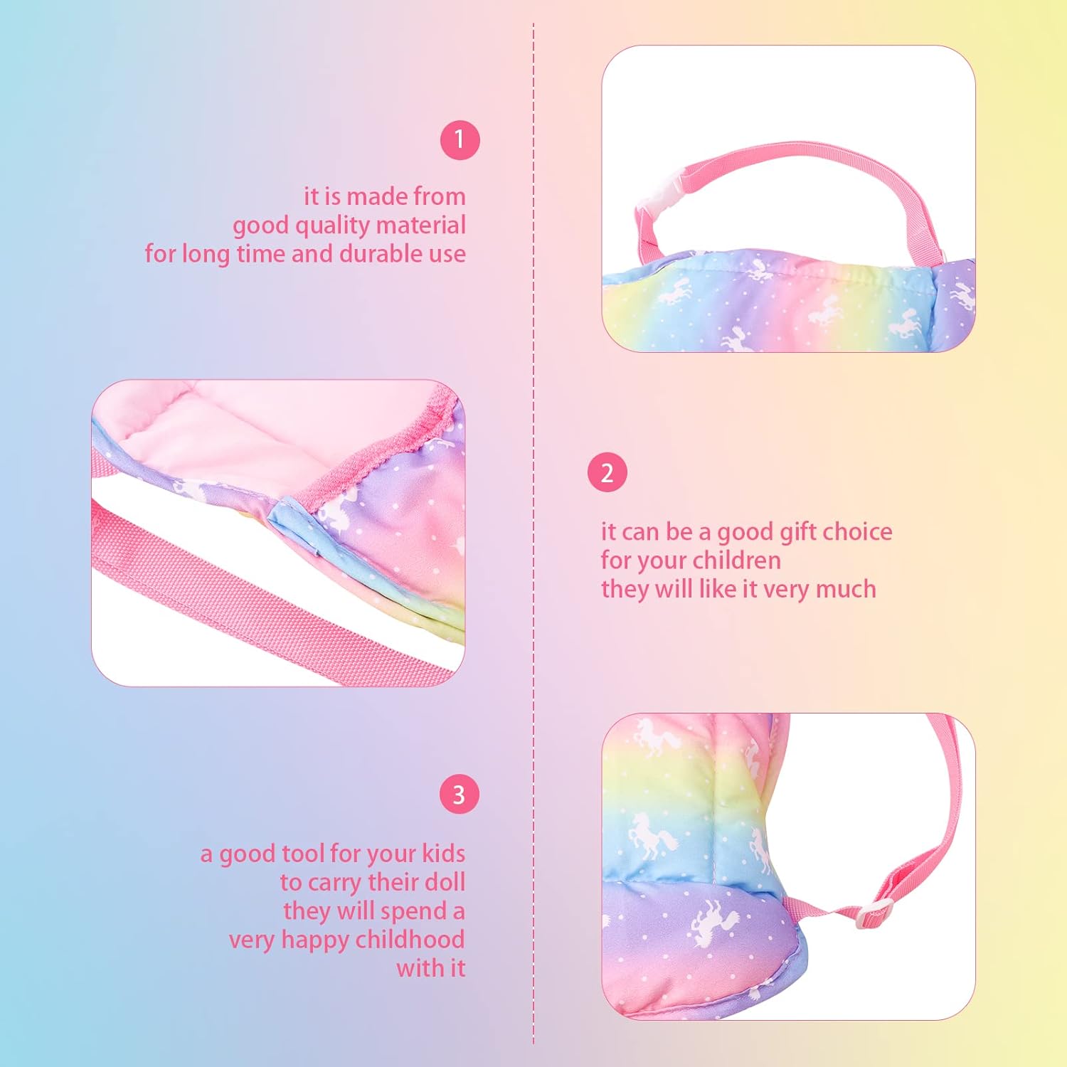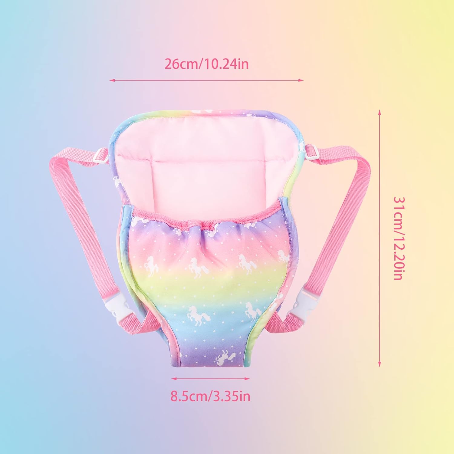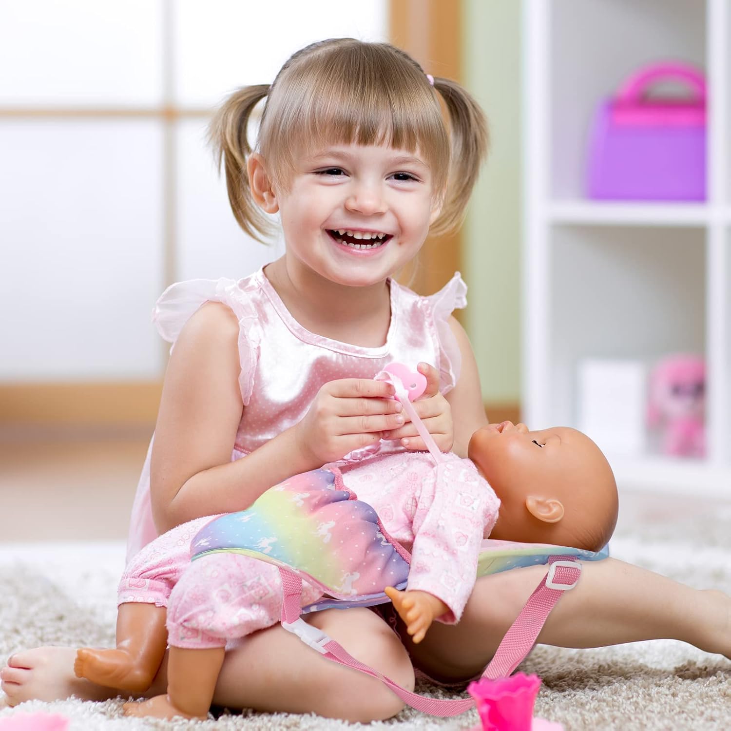 Презрамките са регулируеми, а този несесер за кукли има два различни начина на носене отпред и отзад, от които децата могат да избират, което го прави по-забавен.