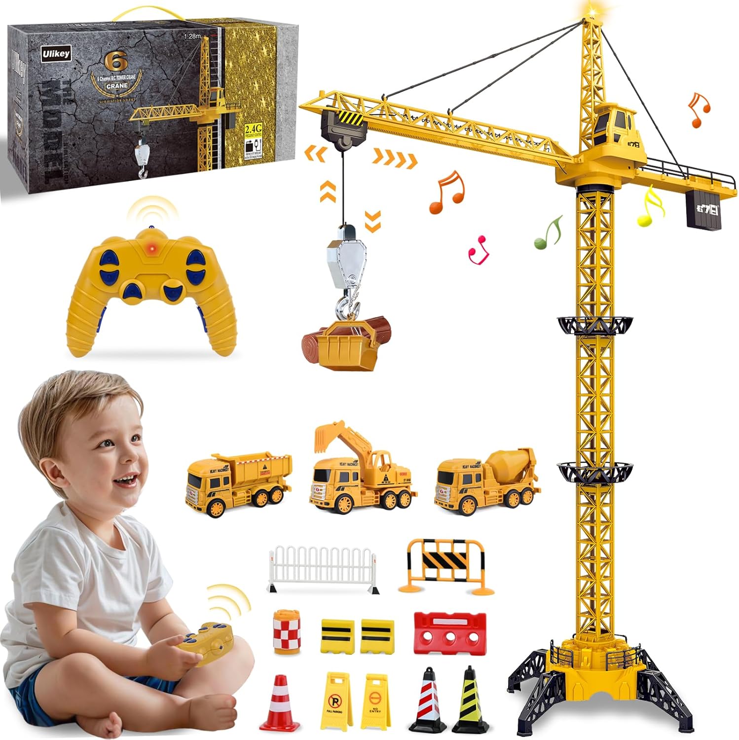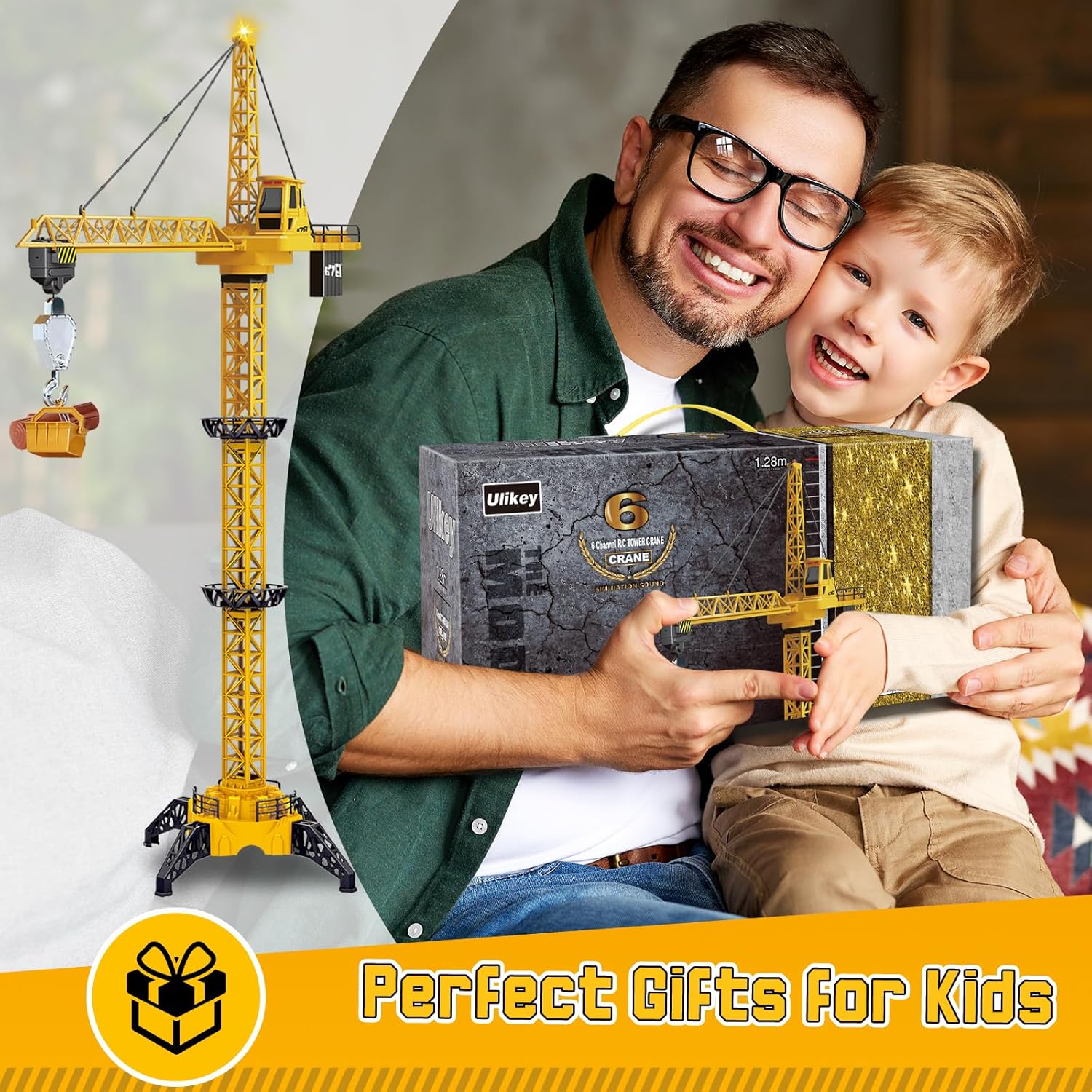 Кулокран с дистанционно управление Ulikey, 2.4GHz RC кран с дистанционно управление, височина 128 см, 6 канала, повдигащ се на 680° с дистанционно управление, с фар и звук, играчка за строителство