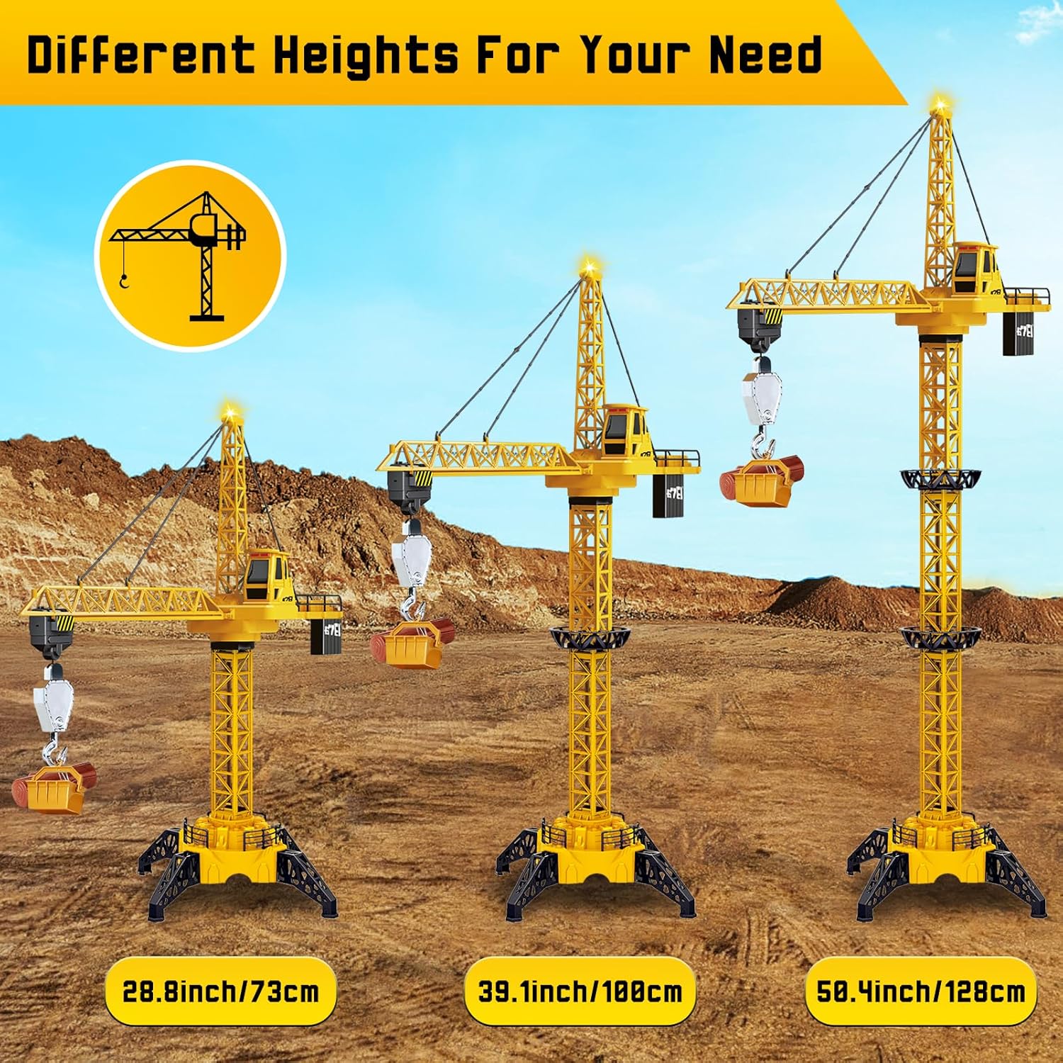 • 3 регулируеми по височина: този кулокран се състои от подвижни скоби, които могат да се монтират на 3 различни височини, изберете правилната височина според вашите нужди, които са 73 см, 100 см и 128 см. Комплектът се предлага също с 3 камиона за инструменти, камион миксер, самосвал, багер и барикаден дисплей, това е добра интерактивна играчка, която родителите могат да играят с децата си.