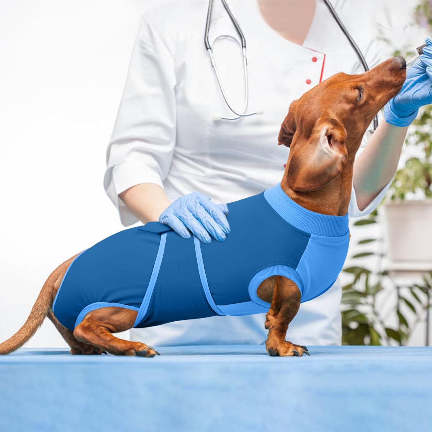 • Следоперативно боди за кучета: Това следоперативно боди за женски кучета предотвратява облизването на рани. Помага и при кожни проблеми, инфекциозни заболявания, алергии и инфекции. Жилетката за кучета може да се използва и като домашно облекло и предлага пълна свобода на движение.