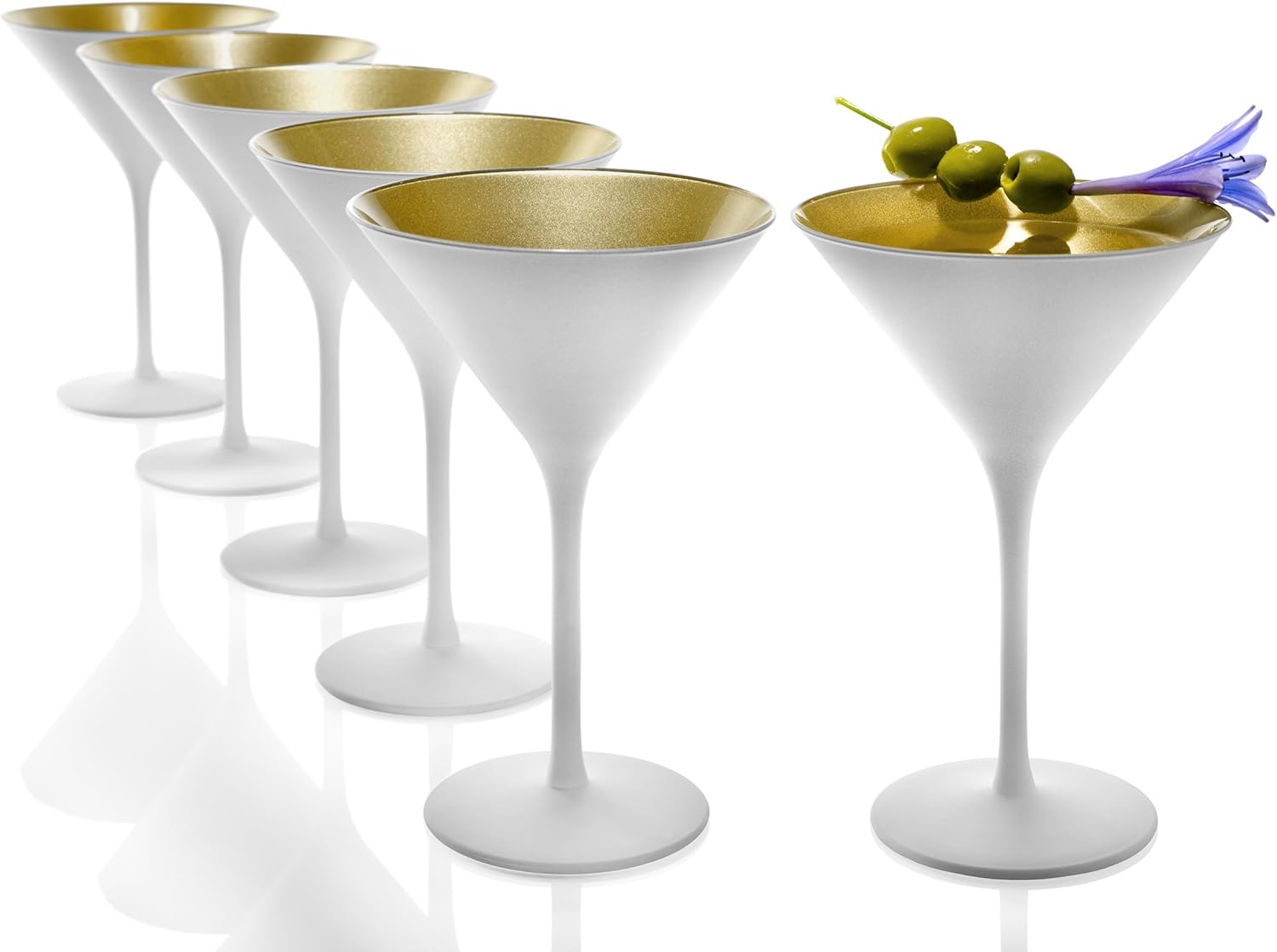 Купа за коктейл Stölzle Lausitz, бяла външна част, златна вътрешна част, колекция Elements, комплект от 6, макс. 240 мл, 172x116 мм, нечупливо кристално стъкло, 1400025EL086