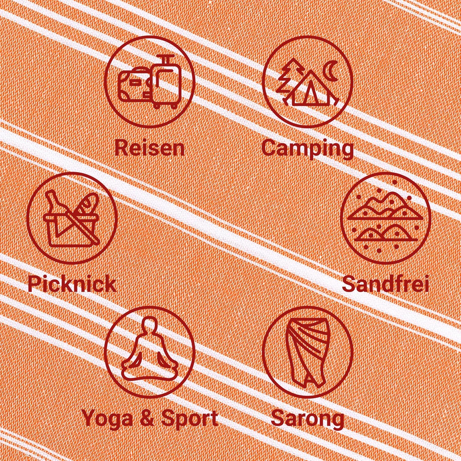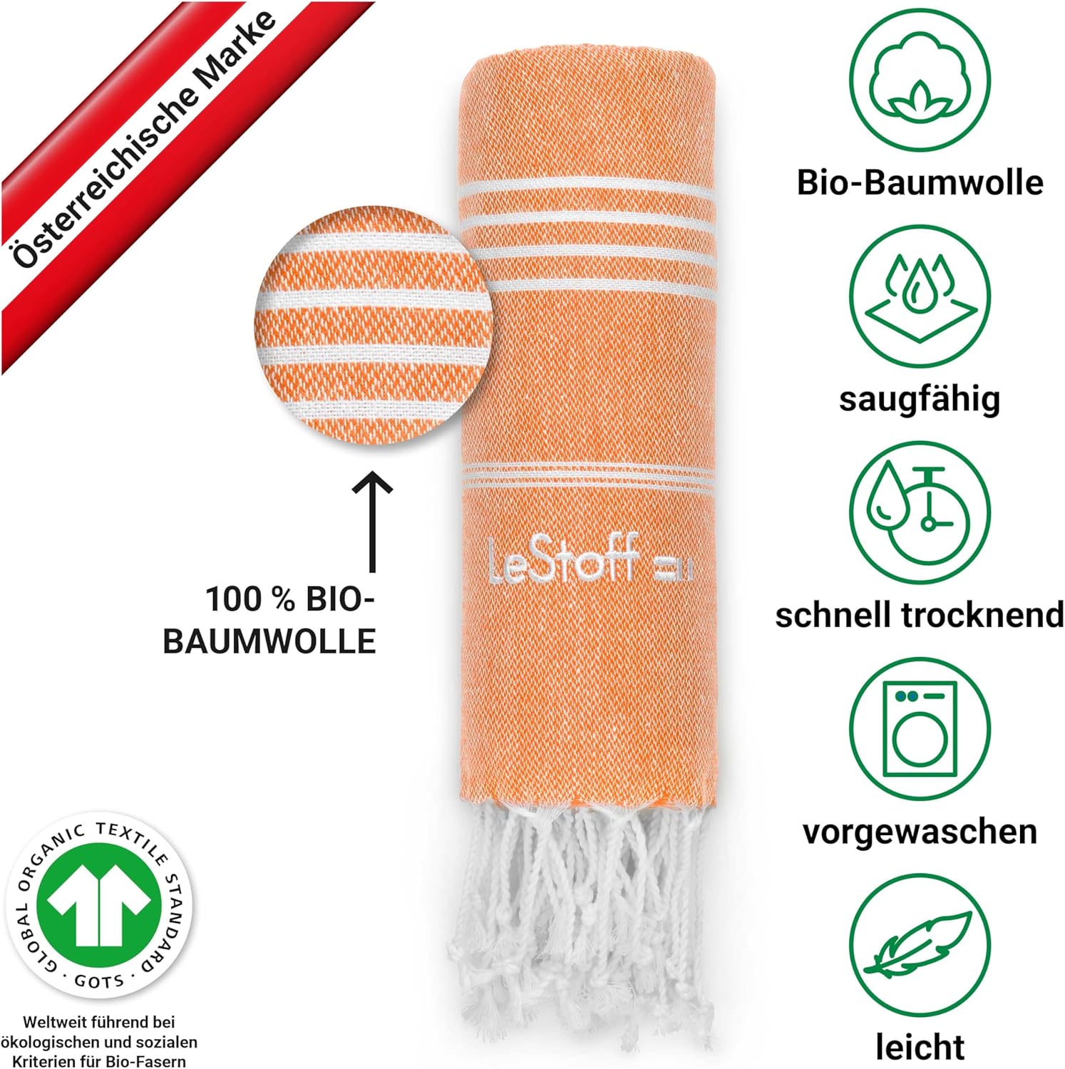 Кърпа LeStoff Hammam - 100% органичен памук, 95 x 180 см, предварително прана, абсорбираща, бързосъхнеща, лека, компактна, без пясък, плажна кърпа, кърпа за пътуване, кърпа за баня, голяма плажна кърпа (оранжева)