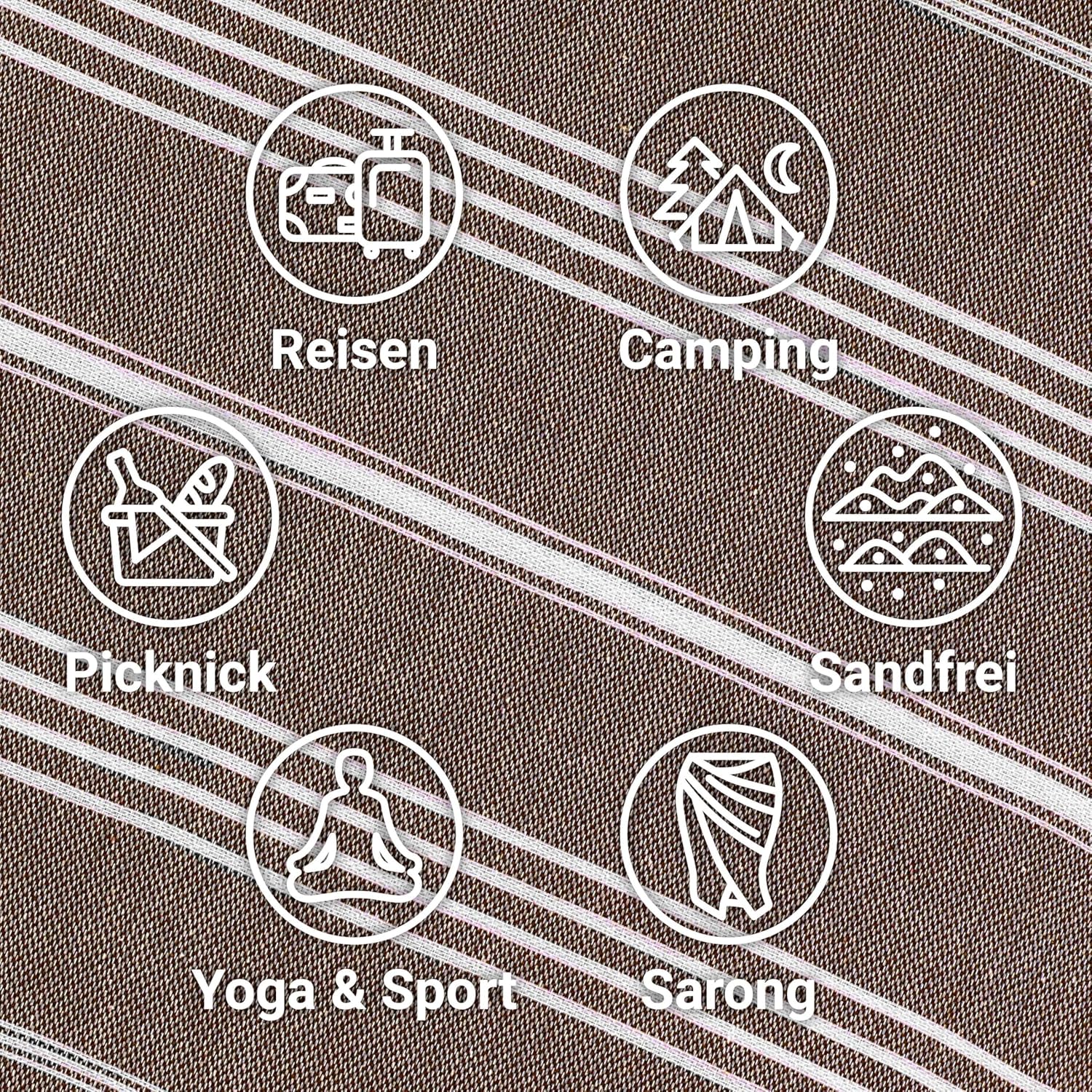 • Многофункционална: независимо дали за сушене, като плажна кърпа, кърпа за сауна, спортна кърпа, кърпа за баня или кърпа за йога – нашата хамам кърпа LeStoff впечатлява със своята многофункционалност. Идеална за пътуване, защото благодарение на лекотата си и възможността за навиване, тя е перфектната кърпа за пътуване и къмпинг.