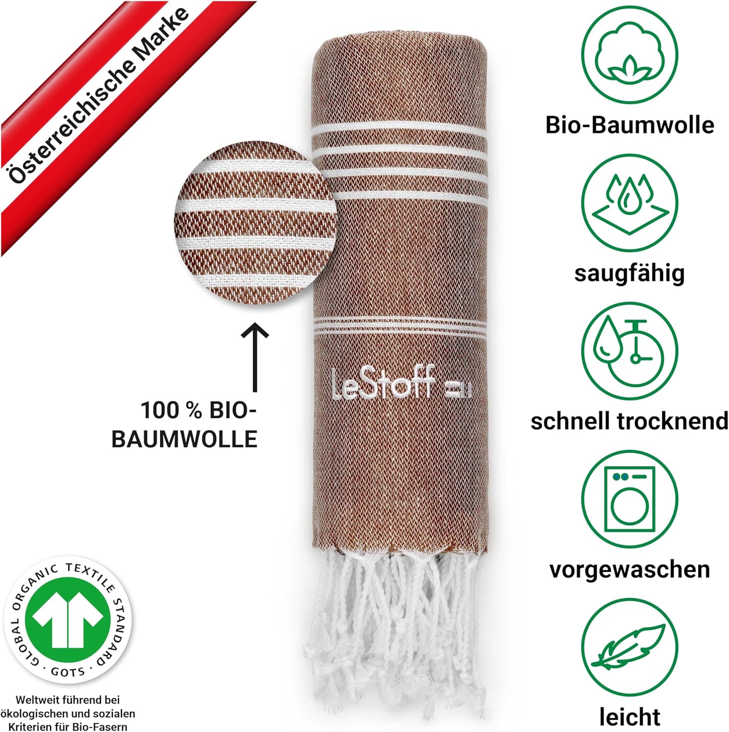Кърпа LeStoff Hammam - 100% органичен памук, 95 x 180 см, предварително прана, абсорбираща, бързосъхнеща, лека, компактна, хавлия за къмпинг, хавлия за пътуване, хавлия за баня, хавлия за баня, кафява