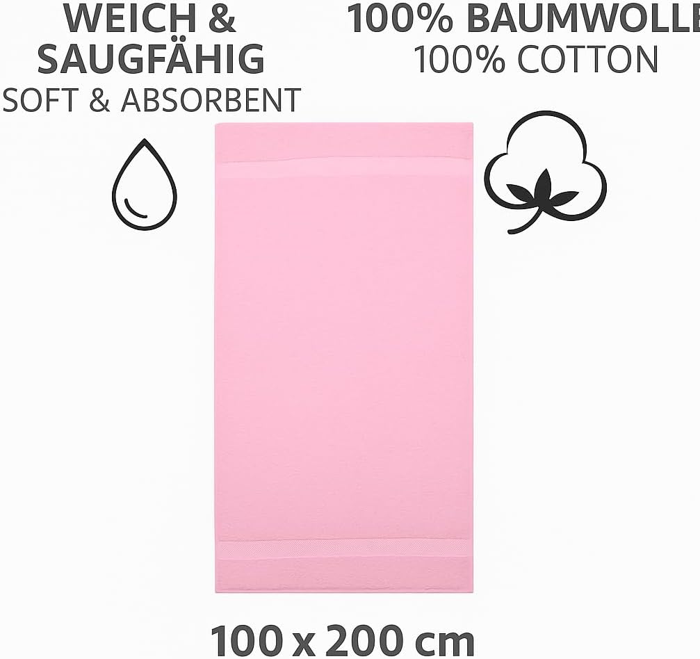 Кърпа за баня Betz Palermo Series XXL 100 x 200 см 100% памук - мека хавлиена кърпа, кърпа за сауна и плаж - лесна за поддръжка и абсорбираща - серия Palermo - цвят розов