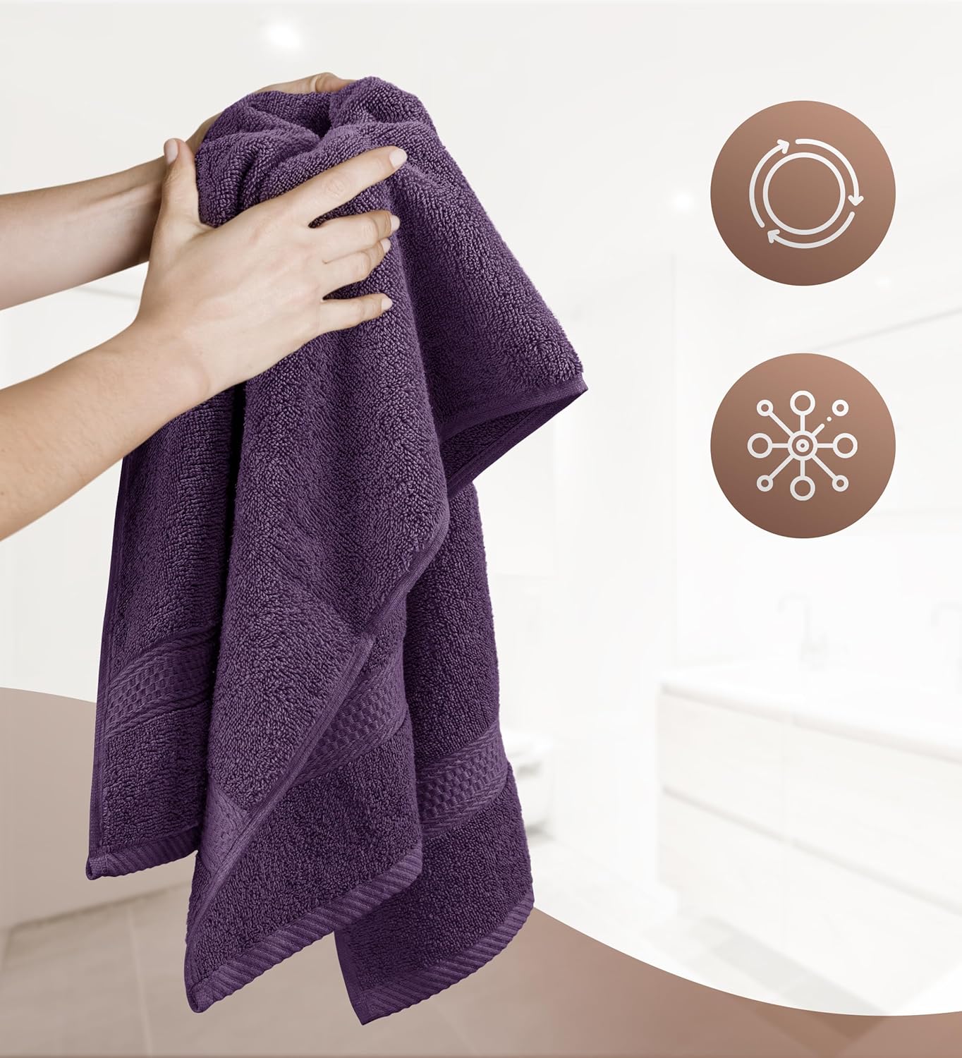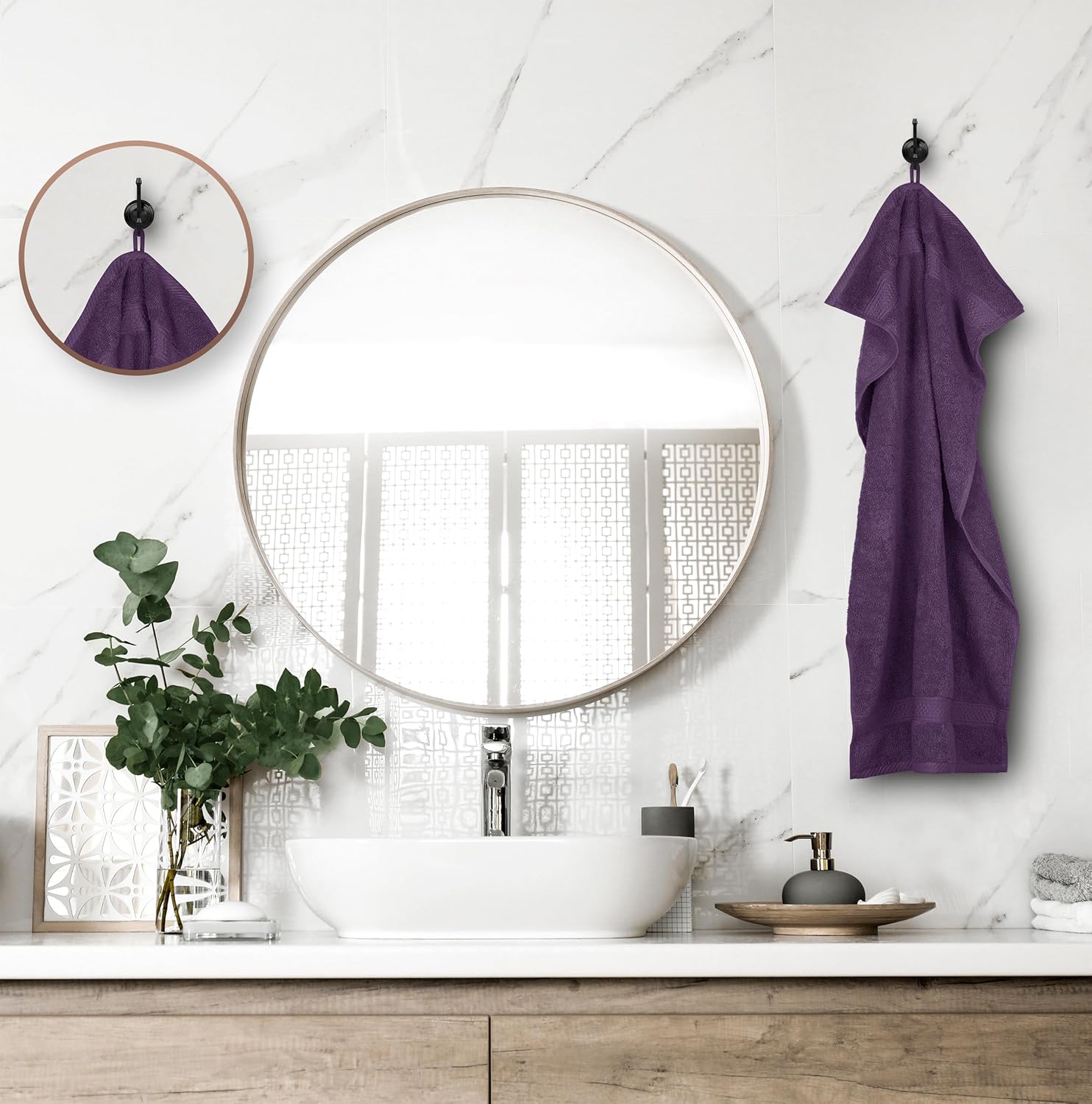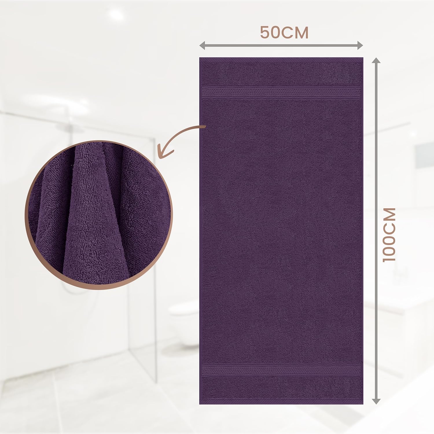 Кърпи Utopia - Комплект от 6 хавлиени кърпи за ръце 50 x 100 см с примка за закачване, Средни кърпи за ръце 100% памучен комплект меки и абсорбиращи кърпи за ръце (сливова)