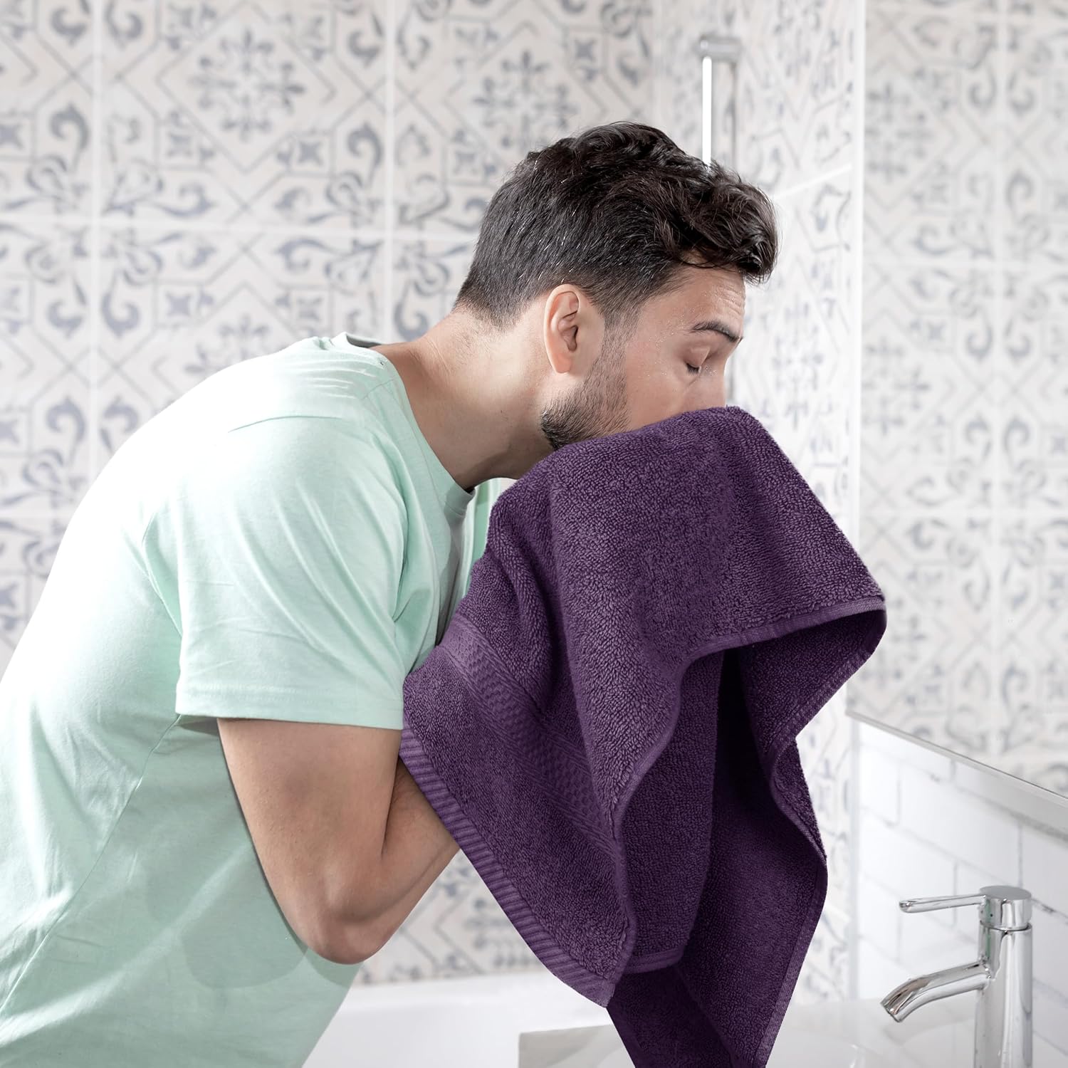 • Инструкции за грижа: За да избегнете неочаквано обезцветяване, препоръчваме да не премахвате или нанасяте козметика, кремове за лице или ексфолианти директно с кърпата.