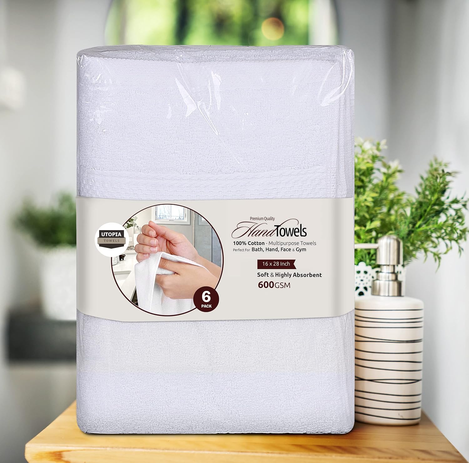 Кърпи Utopia - Комплект памучни кърпи - 100% памук, ултра меки и силно абсорбиращи, 41 x 71 см - Пакет от 6 (бели)