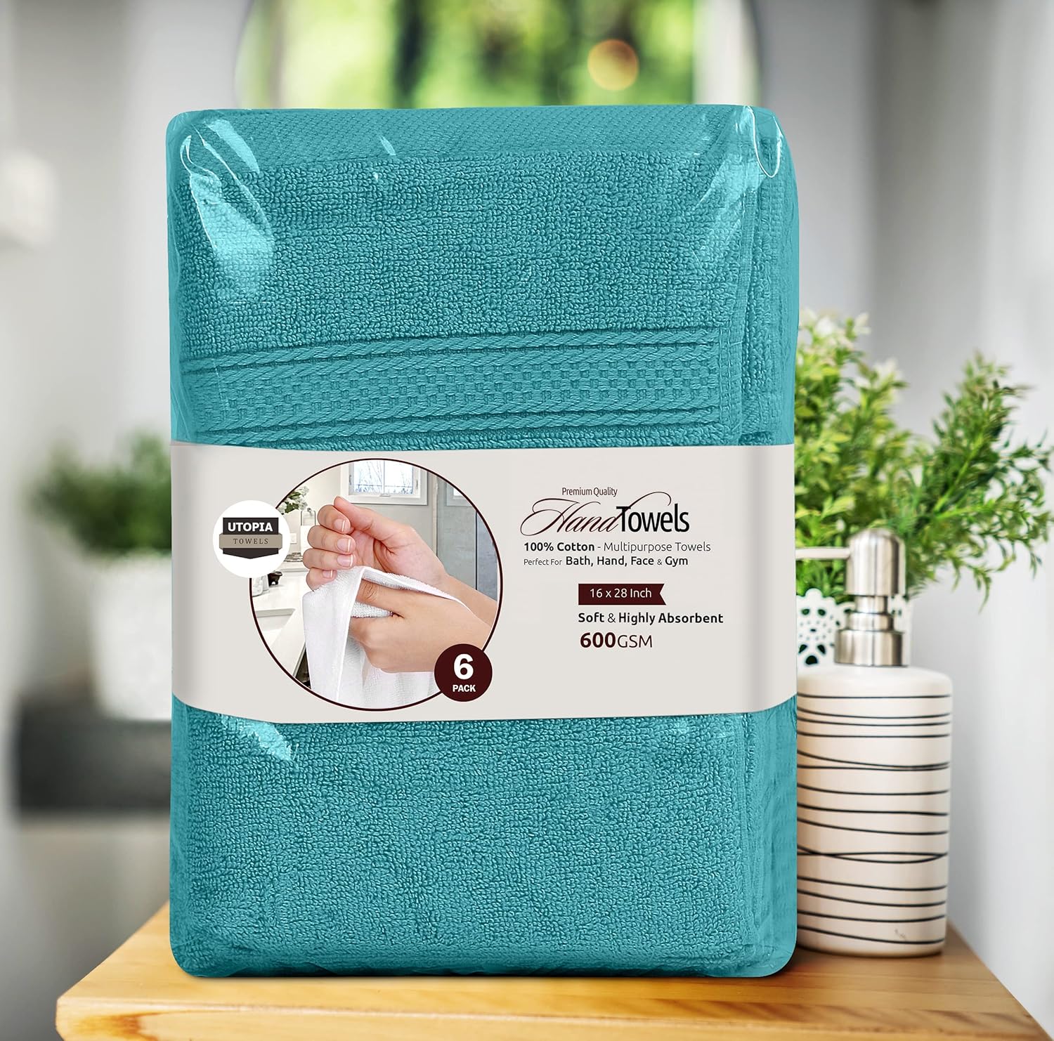 Кърпи Utopia - Комплект памучни кърпи - 100% памук, ултра меки и силно абсорбиращи, 41 x 71 см - Пакет от 6 (тюркоазени)