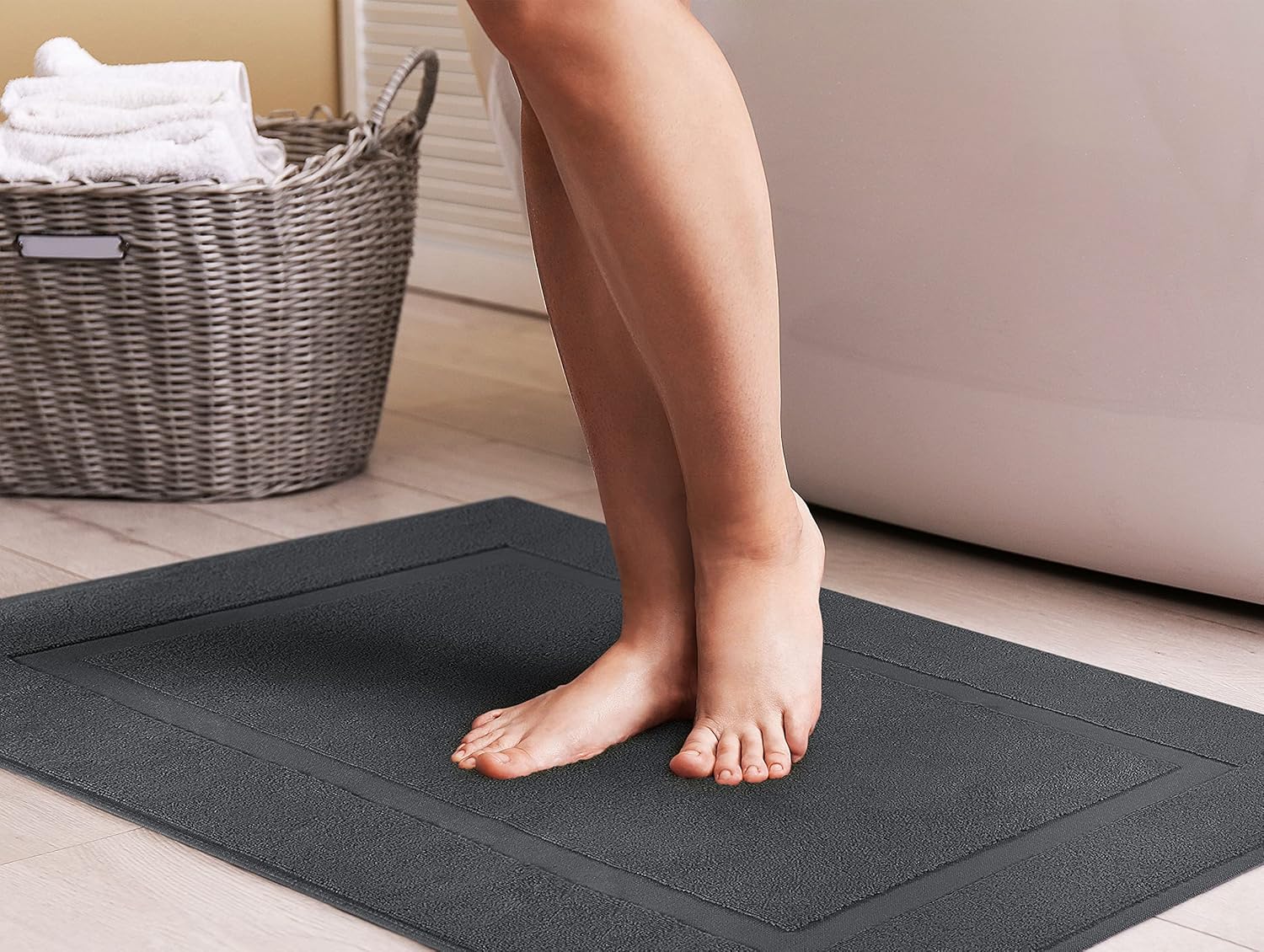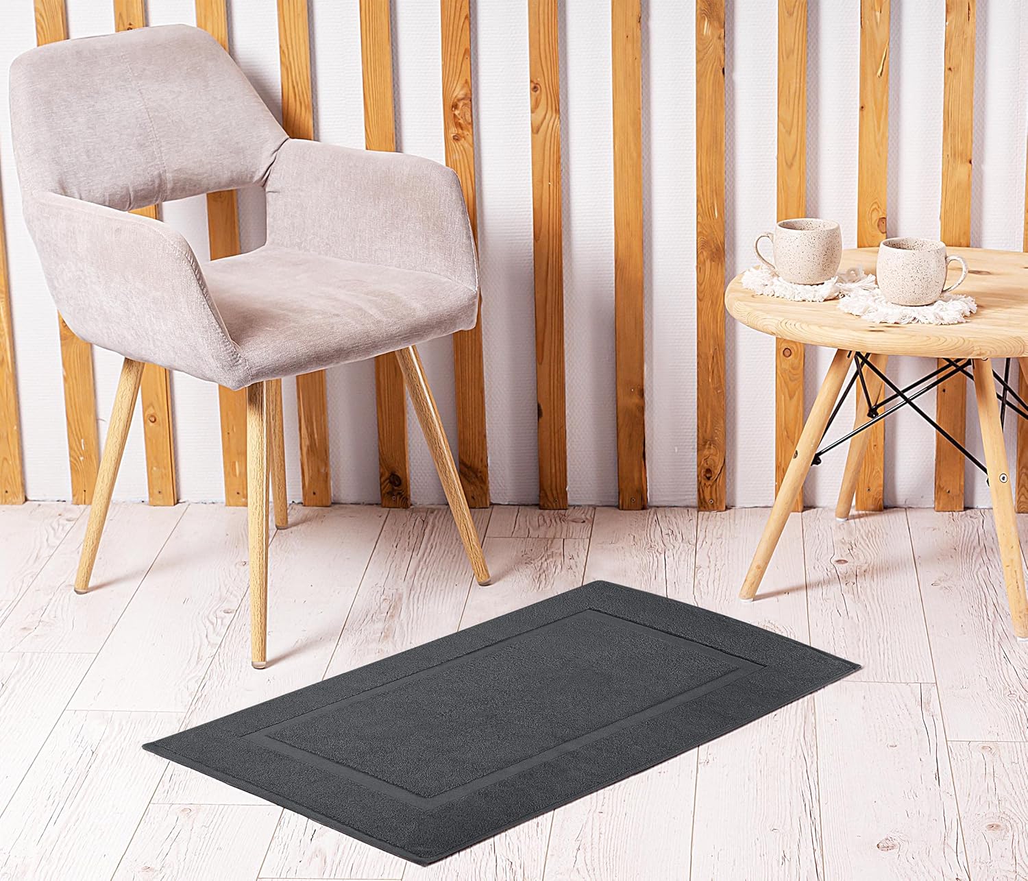 Мекотата на тези постелки за баня, наподобяваща кърпа, осигурява изключителен комфорт за краката, изключително бързо абсорбиране на влагата и същевременно бързо изсъхване, което ги прави идеални за ежедневна домашна употреба. Докато обикновените постелки и изтривалки за баня създават усещане за студ и влага в краката ви, тези 100% памучни постелки могат да се погрижат за краката ви точно както трябва и да осигурят максимален комфорт, който заслужават. Тези издръжливи постелки за баня изпълняват вашата задача, предпазват краката ви от студения и твърд под и ви дават усещане за спа център у дома.