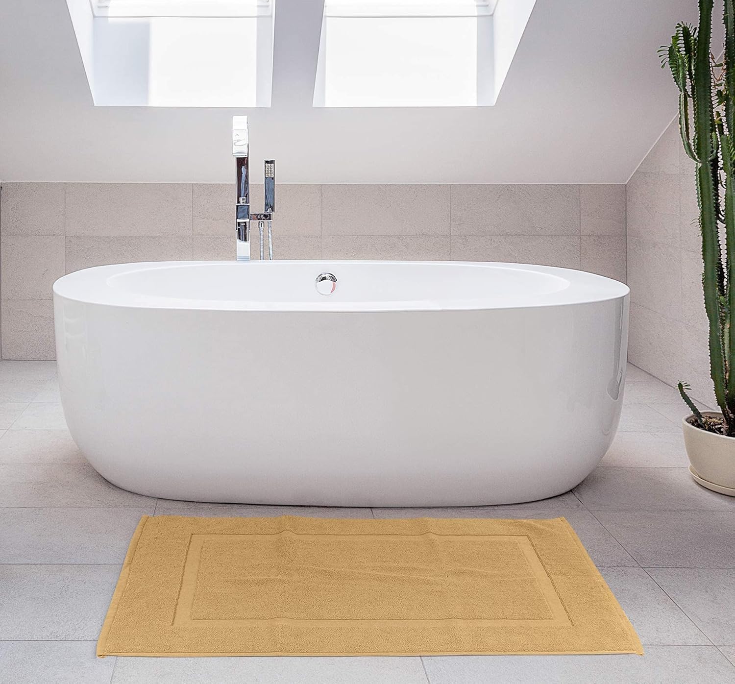 Мекотата на тези постелки за баня, наподобяваща кърпа, осигурява изключителен комфорт за краката, изключително бързо абсорбиране на влагата и същевременно бързо изсъхване, което ги прави идеални за ежедневна домашна употреба. Докато обикновените постелки и изтривалки за баня създават усещане за студ и влага в краката ви, тези 100% памучни постелки могат да се погрижат за краката ви точно както трябва и да осигурят максимален комфорт, който заслужават. Тези издръжливи постелки за баня изпълняват вашата задача, предпазват краката ви от студения и твърд под и ви дават усещане за спа център у дома.