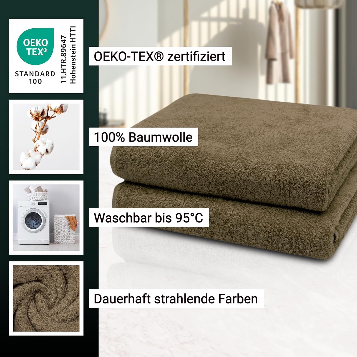 Индантреновият цвят гарантира на кърпите за гости най-високи стойности за устойчивост на цветовете и най-добра стабилност на цветовете, те могат да се перат до 95°C и дори са устойчиви на варене и хлор.