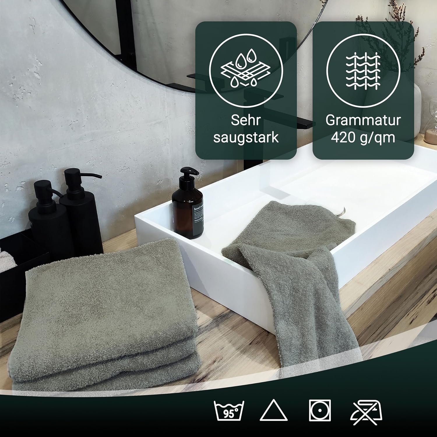 Абсорбиращите постелки за баня впечатляват с най-високата си устойчивост на цветовете. Благодарение на боядисването с индантрен, хавлиените кърпи постигат най-високи стойности за устойчивост на цветовете и най-добра стабилност на цветовете, могат да се перат до 95°C и дори са устойчиви на кипене и хлор.