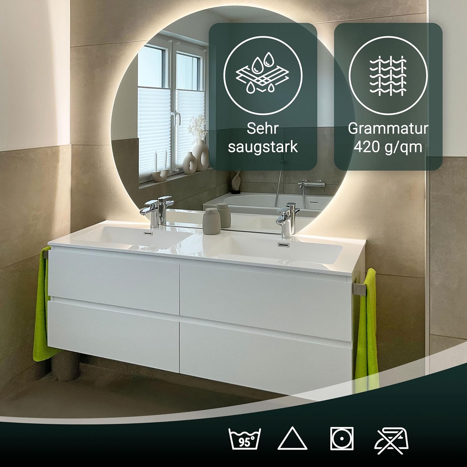 Абсорбиращите постелки за баня впечатляват с най-високата си устойчивост на цветовете. Благодарение на боядисването с индантрен, хавлиените кърпи постигат най-високи стойности за устойчивост на цветовете и най-добра стабилност на цветовете, могат да се перат до 95°C и дори са устойчиви на кипене и хлор.