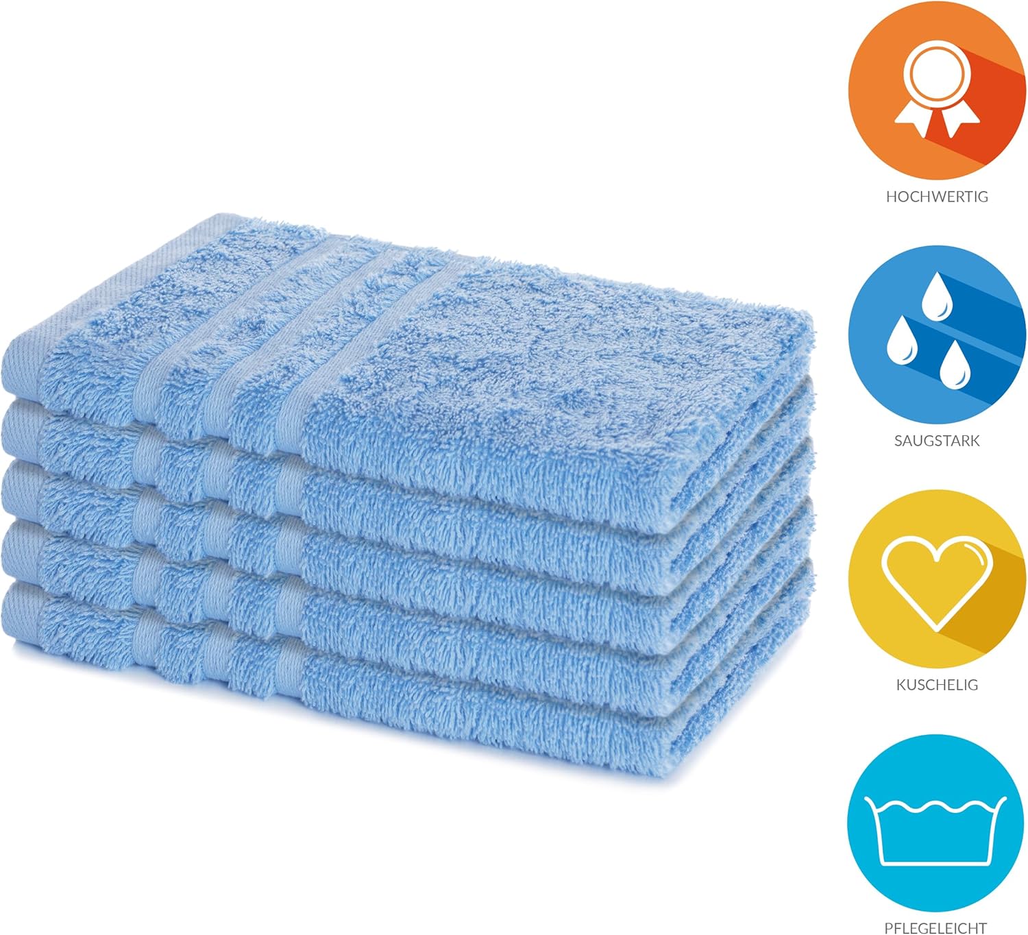 Кърпи за гости Lavea, Terry Series Elena, 30 x 50 см, делфиново синьо, комплект от 5