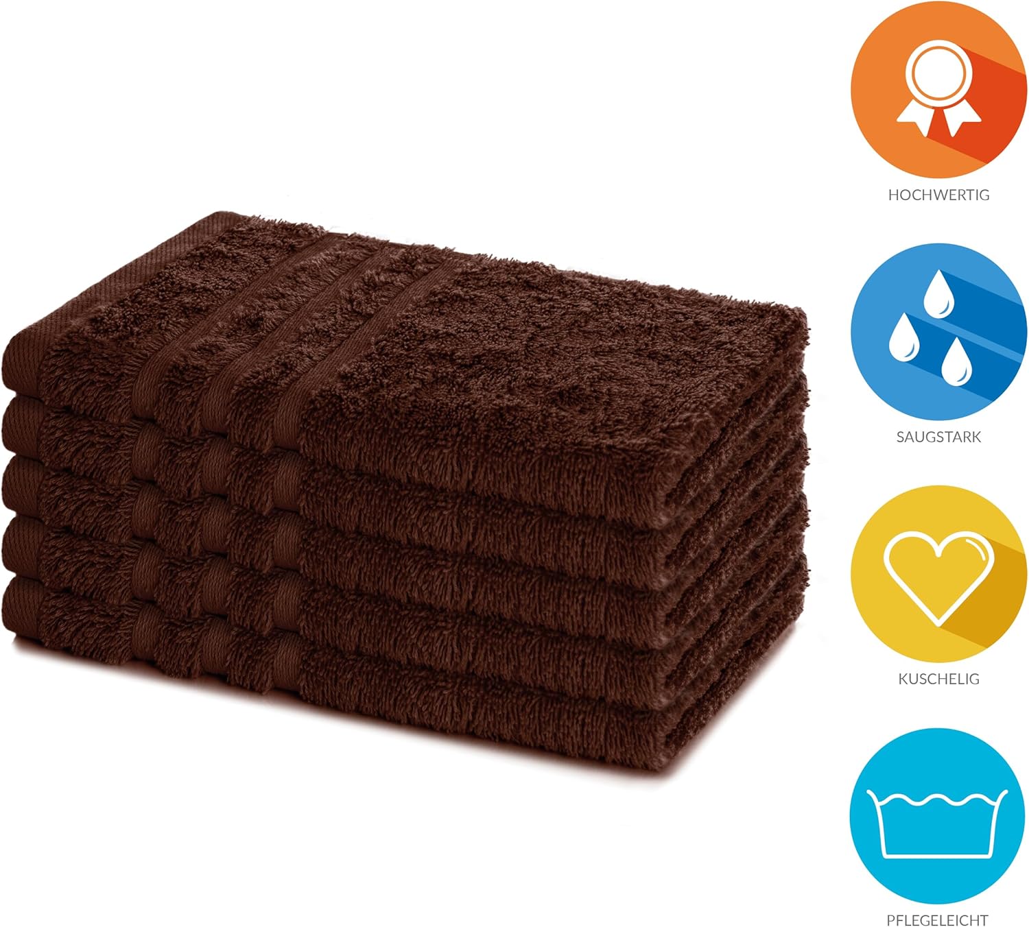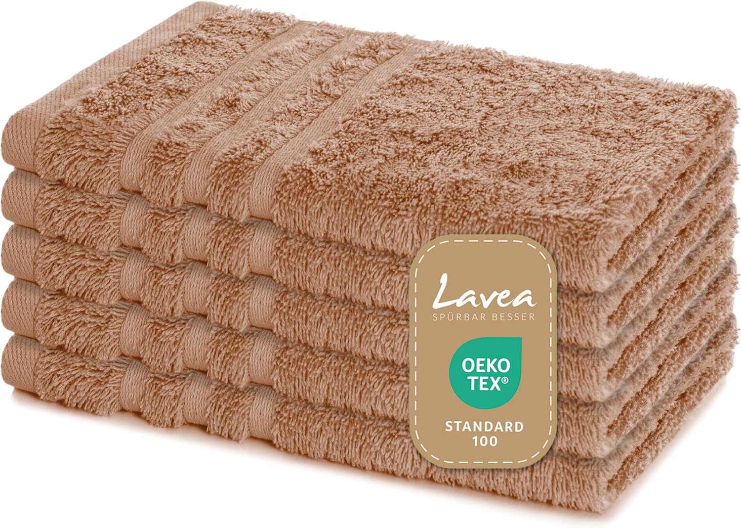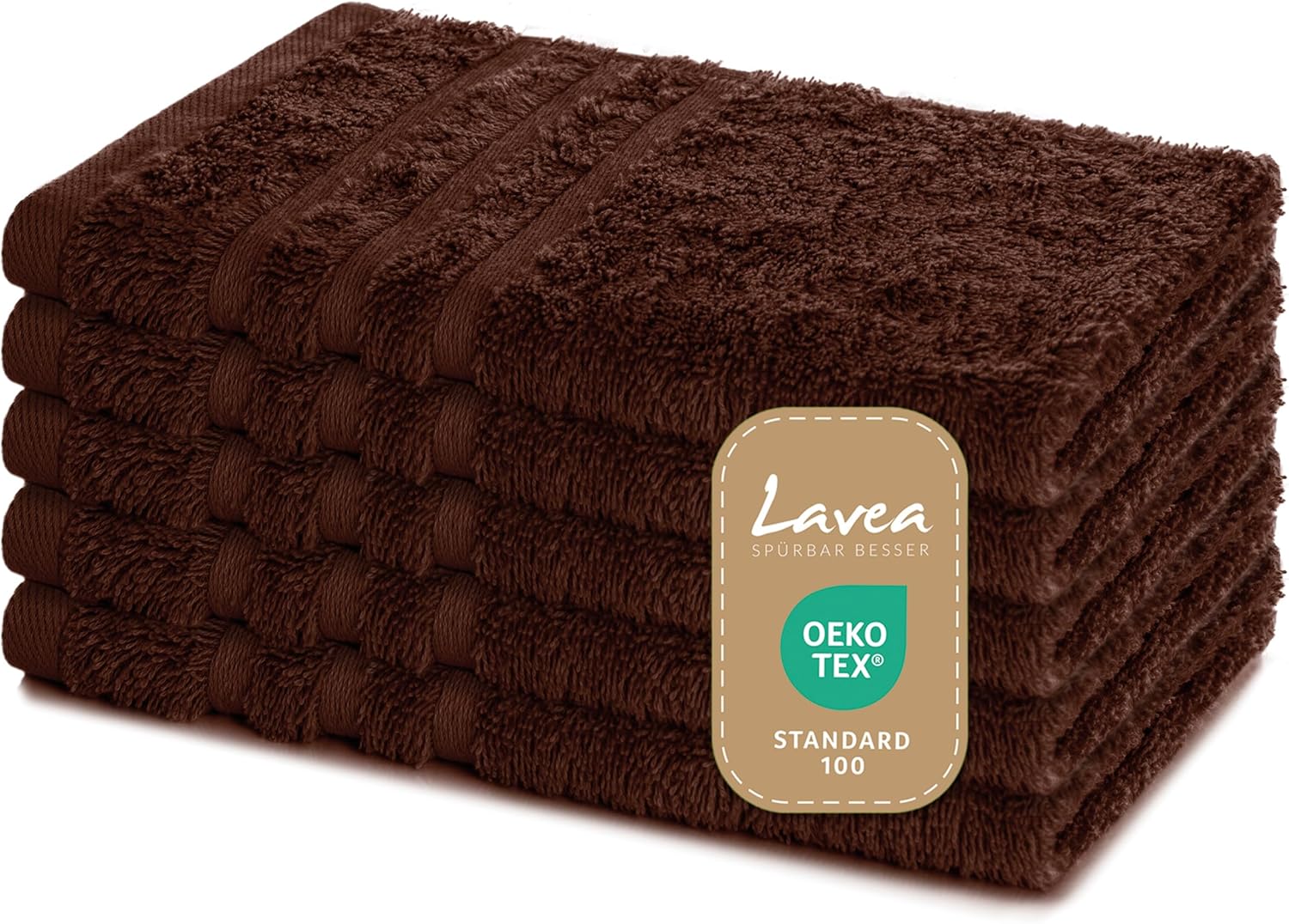 Кърпи за гости Lavea, Terry Series Elena, 30 x 50 см, Кафяво кафе, Комплект от 5