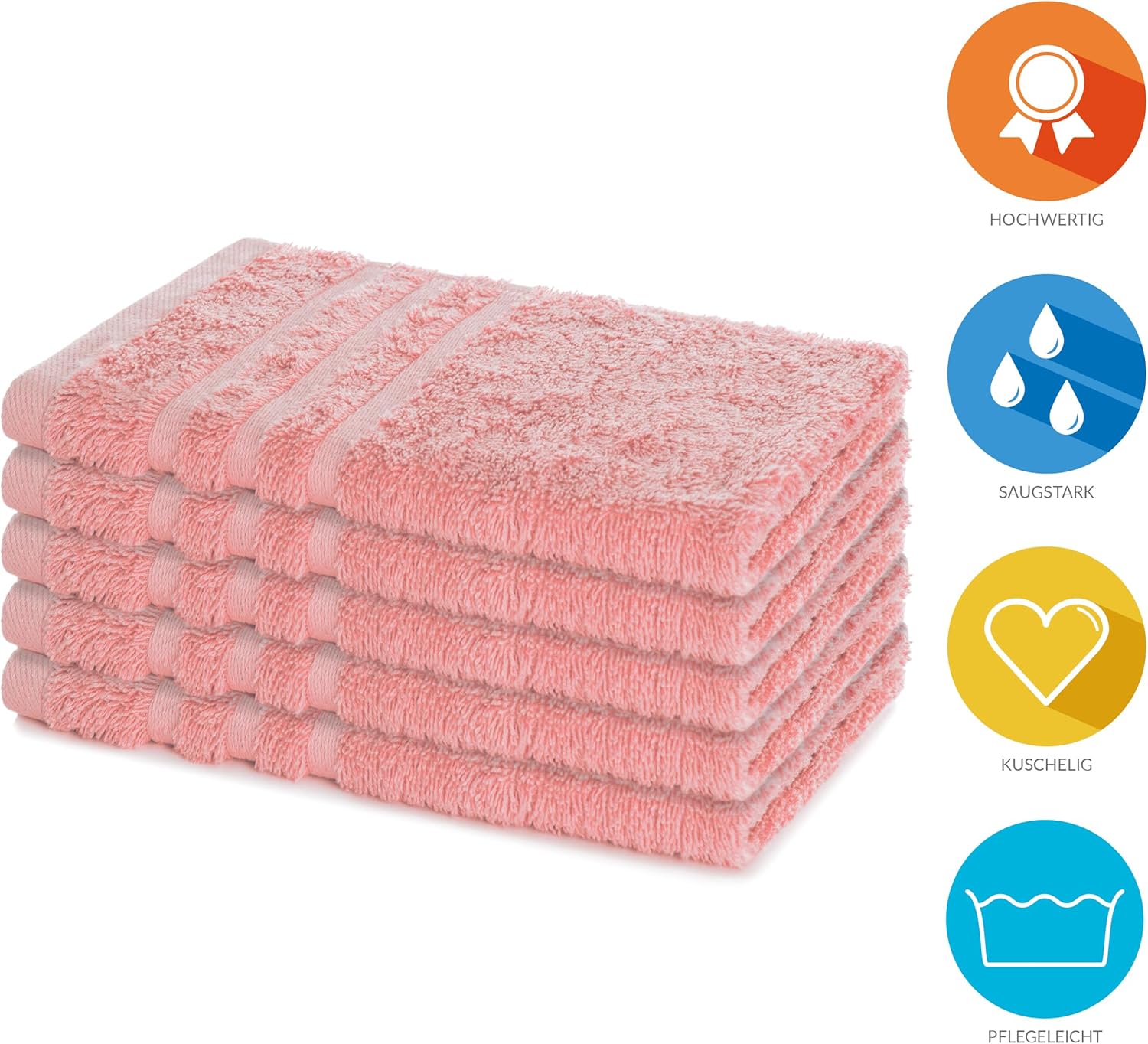 Кърпи за гости Lavea, Terry Series Elena, 30 x 50 см, пастелно розово, комплект от 5