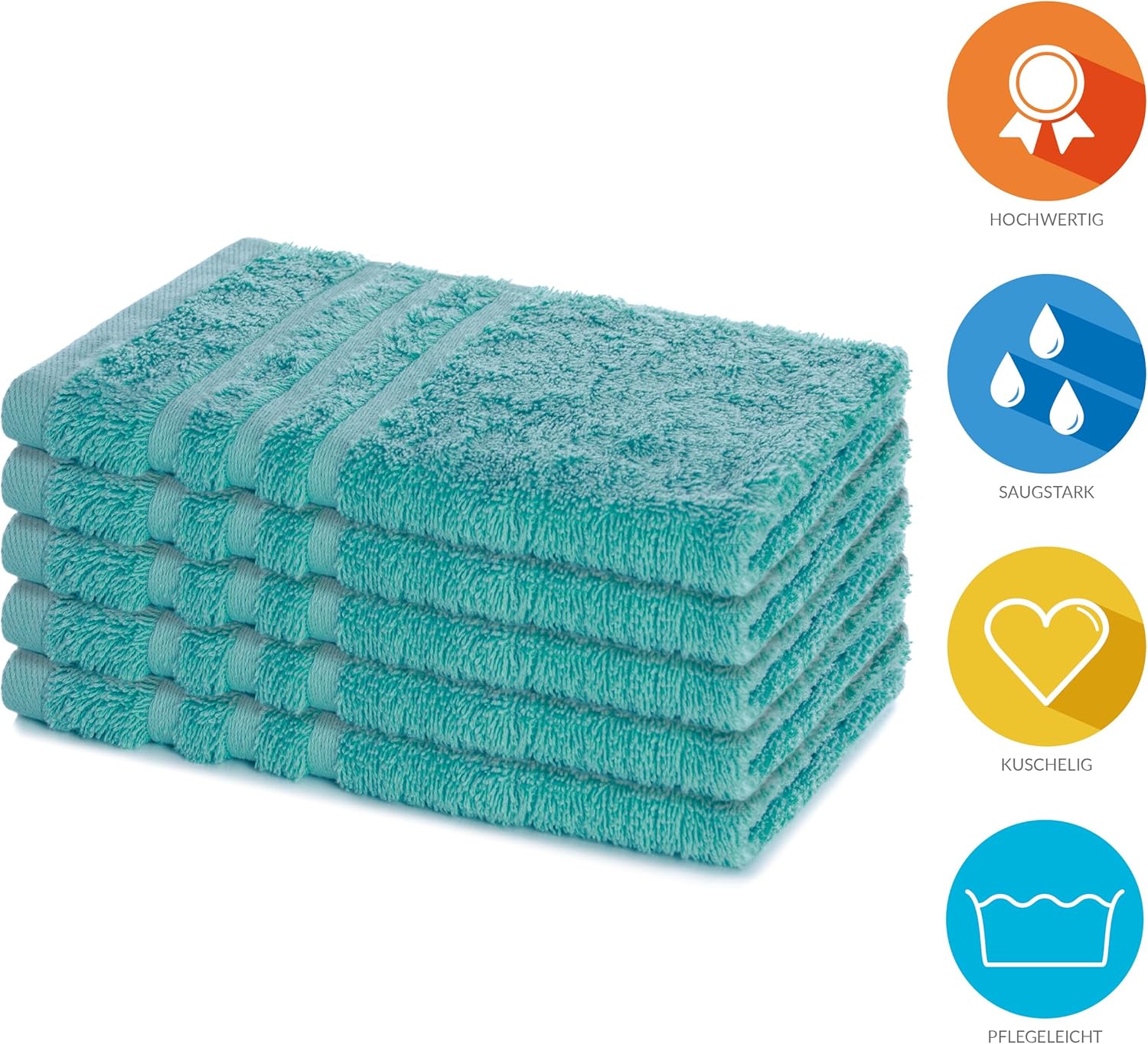 Кърпи за гости Lavea, Terry Series Elena, 30 x 50 см, Тюркоазени, Комплект от 5