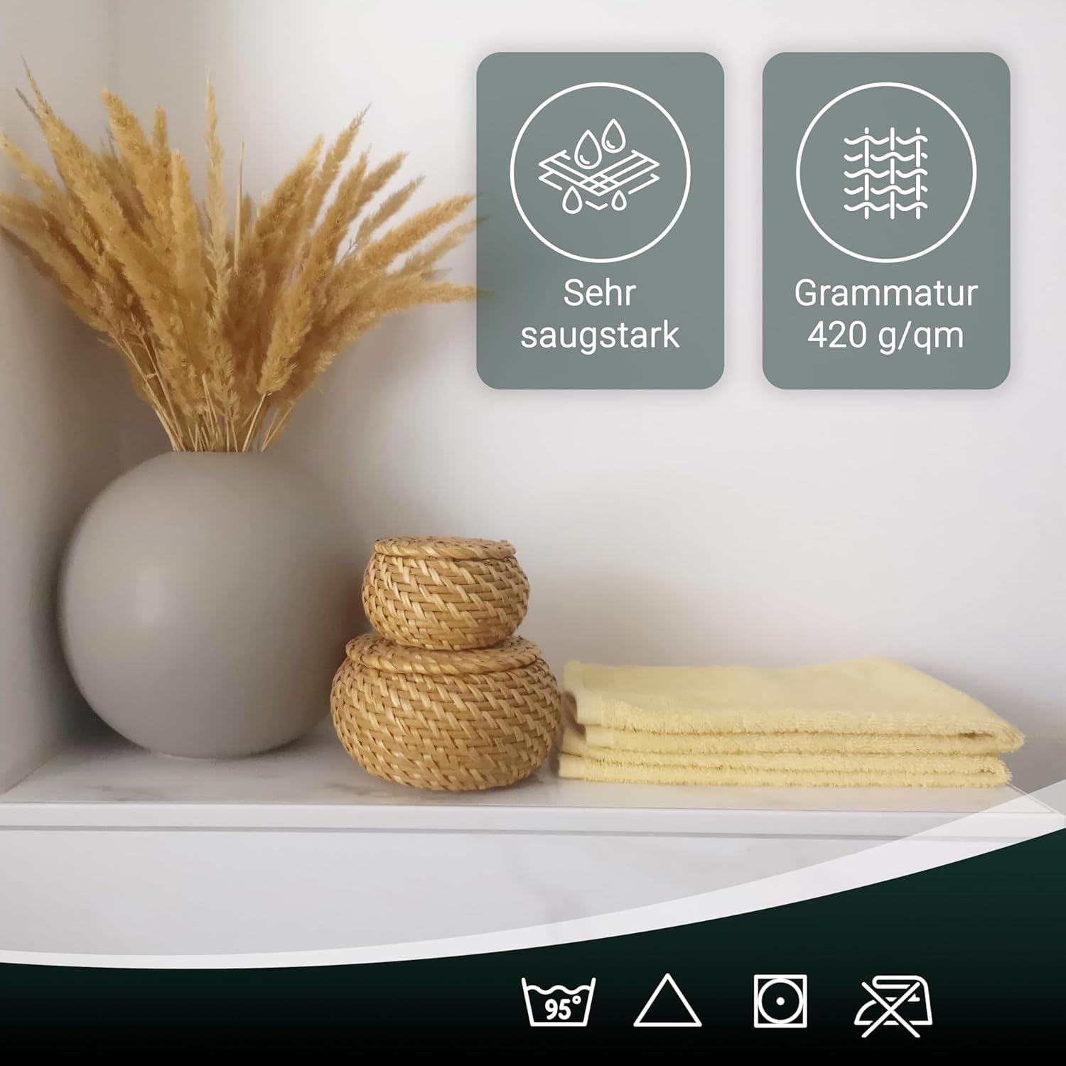 Индантреновият цвят гарантира на кърпите за гости най-високи стойности за устойчивост на цветовете и най-добра стабилност на цветовете, те могат да се перат до 95°C и дори са устойчиви на варене и хлор.
