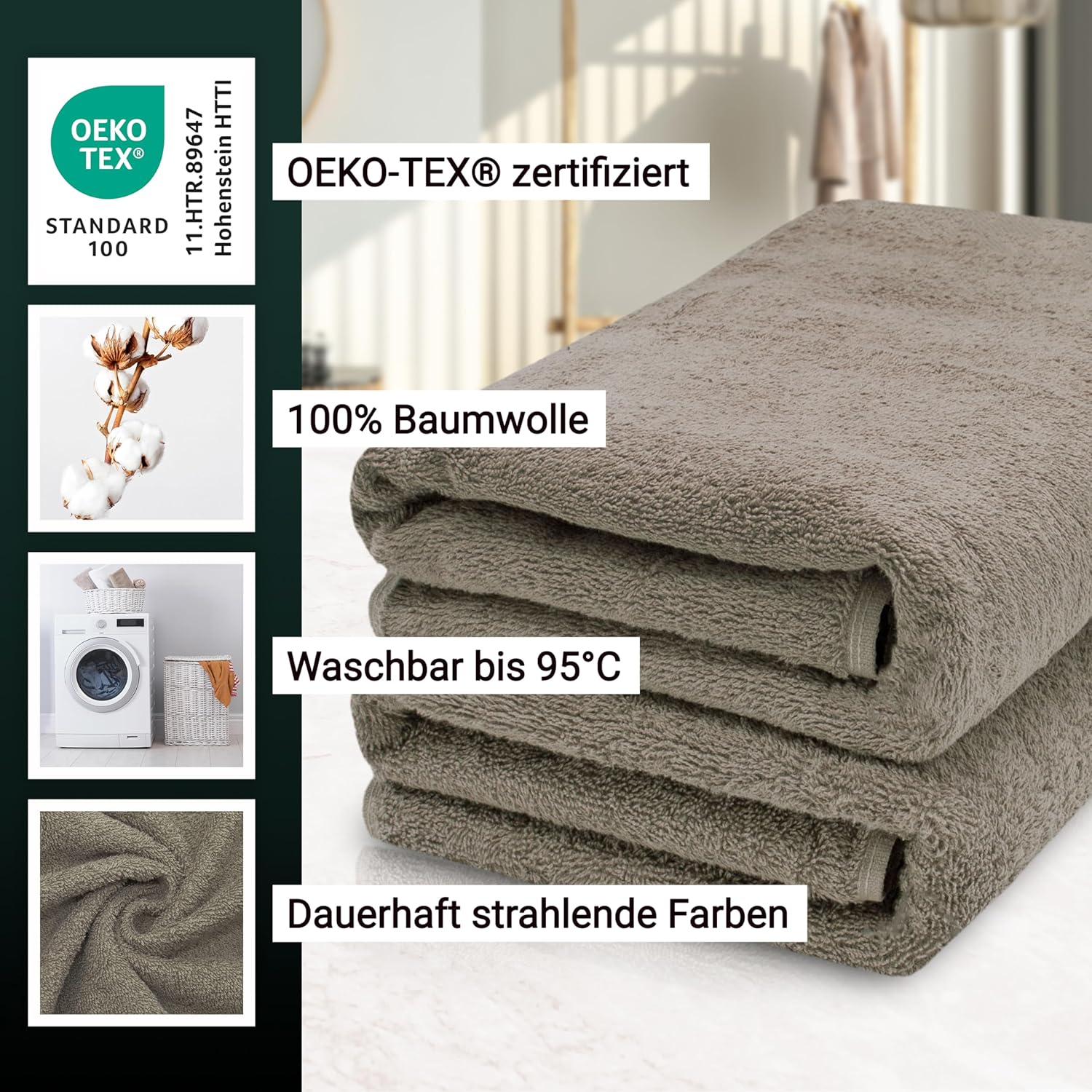 Индантреновият цвят гарантира на кърпите за гости най-високи стойности за устойчивост на цветовете и най-добра стабилност на цветовете, те могат да се перат до 95°C и дори са устойчиви на варене и хлор.