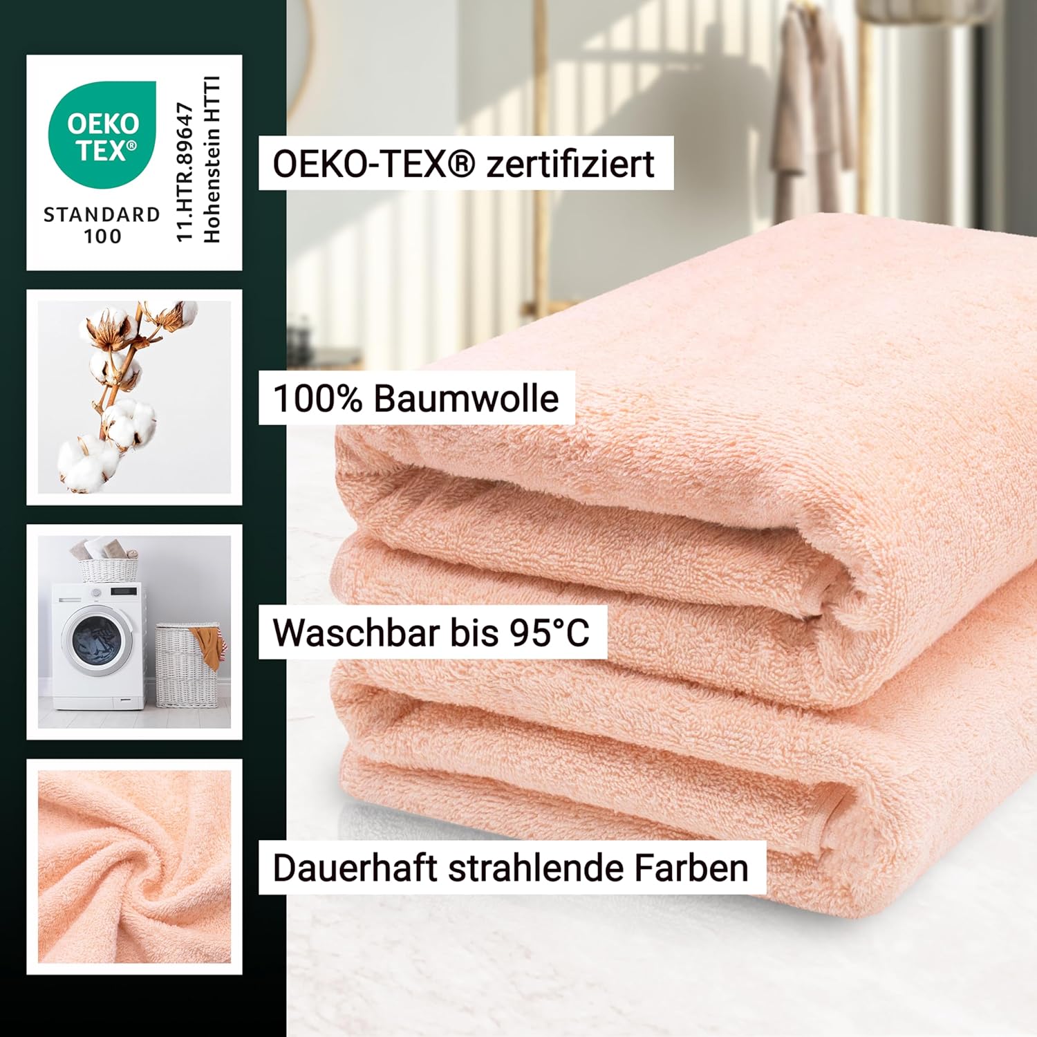 Индантреновият цвят гарантира на кърпите за гости най-високи стойности за устойчивост на цветовете и най-добра стабилност на цветовете, те могат да се перат до 95°C и дори са устойчиви на варене и хлор.