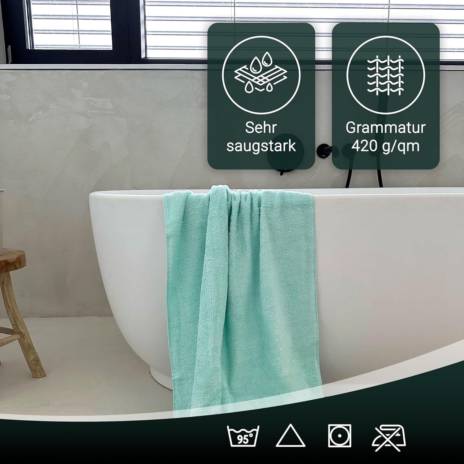 Абсорбиращите постелки за баня впечатляват с най-високата си устойчивост на цветовете. Благодарение на боядисването с индантрен, хавлиените кърпи постигат най-високи стойности за устойчивост на цветовете и най-добра стабилност на цветовете, могат да се перат до 95°C и дори са устойчиви на кипене и хлор.