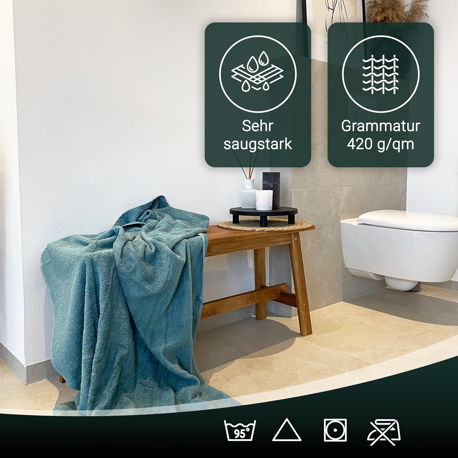 Абсорбиращите постелки за баня впечатляват с най-високата си устойчивост на цветовете. Благодарение на боядисването с индантрен, хавлиените кърпи постигат най-високи стойности за устойчивост на цветовете и най-добра стабилност на цветовете, могат да се перат до 95°C и дори са устойчиви на кипене и хлор.