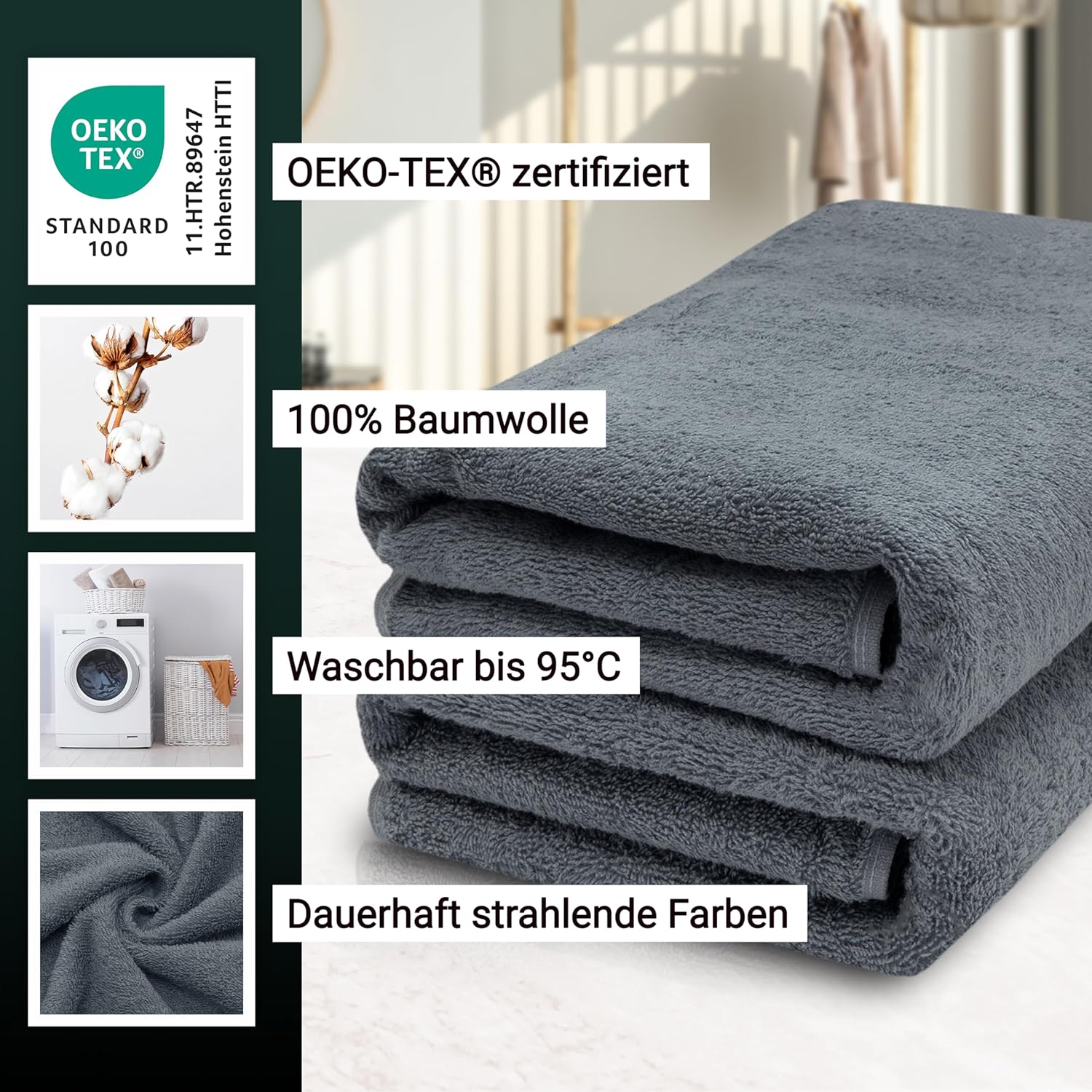 Индантреновият цвят гарантира на кърпите за гости най-високи стойности за устойчивост на цветовете и най-добра стабилност на цветовете, те могат да се перат до 95°C и дори са устойчиви на варене и хлор.