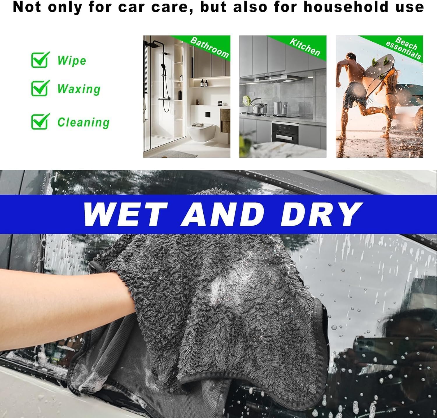 Кърпички за сушене на кола от микрофибър Waterjake Ultra Wipes, суха кърпа за душ Waterjake, супер абсорбираща, супер абсорбираща, суха кърпа за почистване на кола от микрофибър (опаковка от 3)